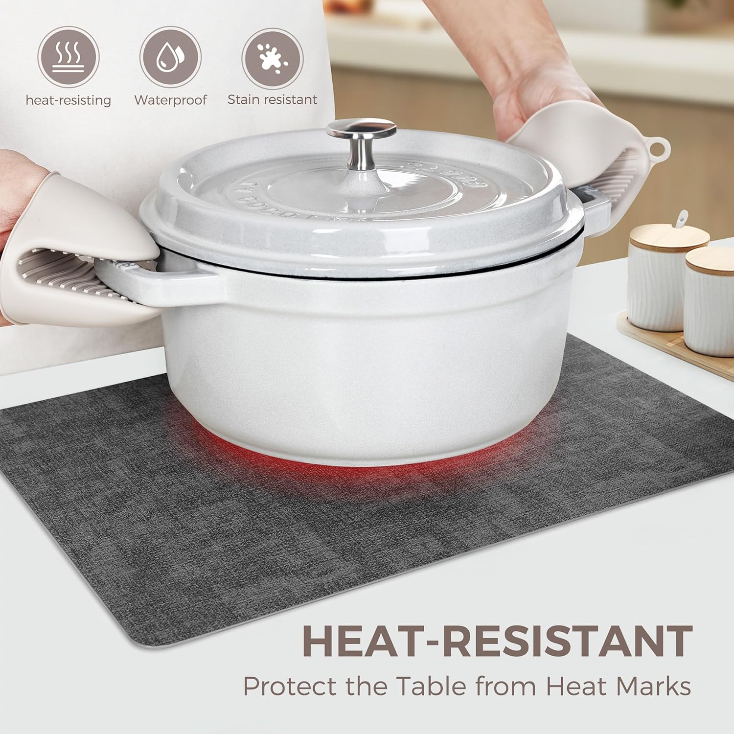 - HEAT RESISTANT PLACEMATS: These placemats can resist high temperature, avoiding leaving heat marks during meals, which is work great for hot dishes. Meanwhile, the placemats have a beautiful color, non-slip surface and easy to recover from creases