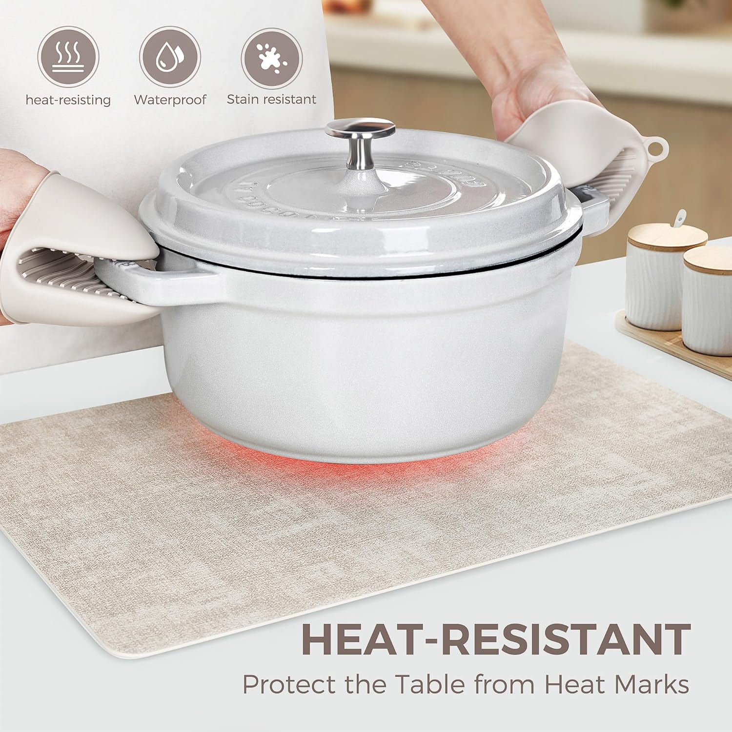 - HEAT RESISTANT PLACEMATS: These placemats can resist high temperature, avoiding leaving heat marks during meals, which is work great for hot dishes. Meanwhile, the placemats have a beautiful color, non-slip surface and easy to recover from creases