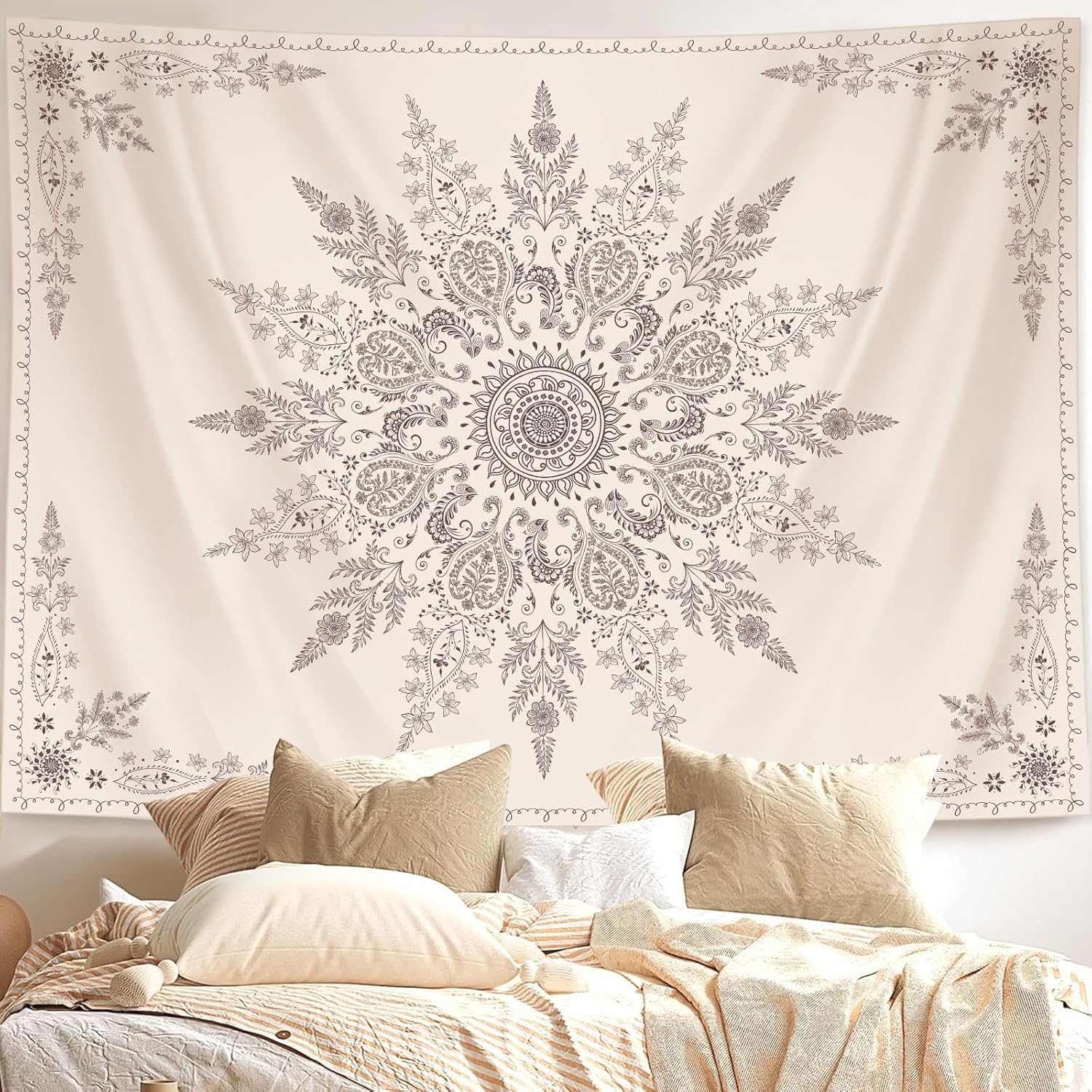 Lunerfex Boho Floral Tapestry Mandala Wall Tapestry, Cute Tapestries for Bedroom Beige Flower Tapestries Wall Hanging for Bedroom Living Room Decor Beige-2 70"x90"
