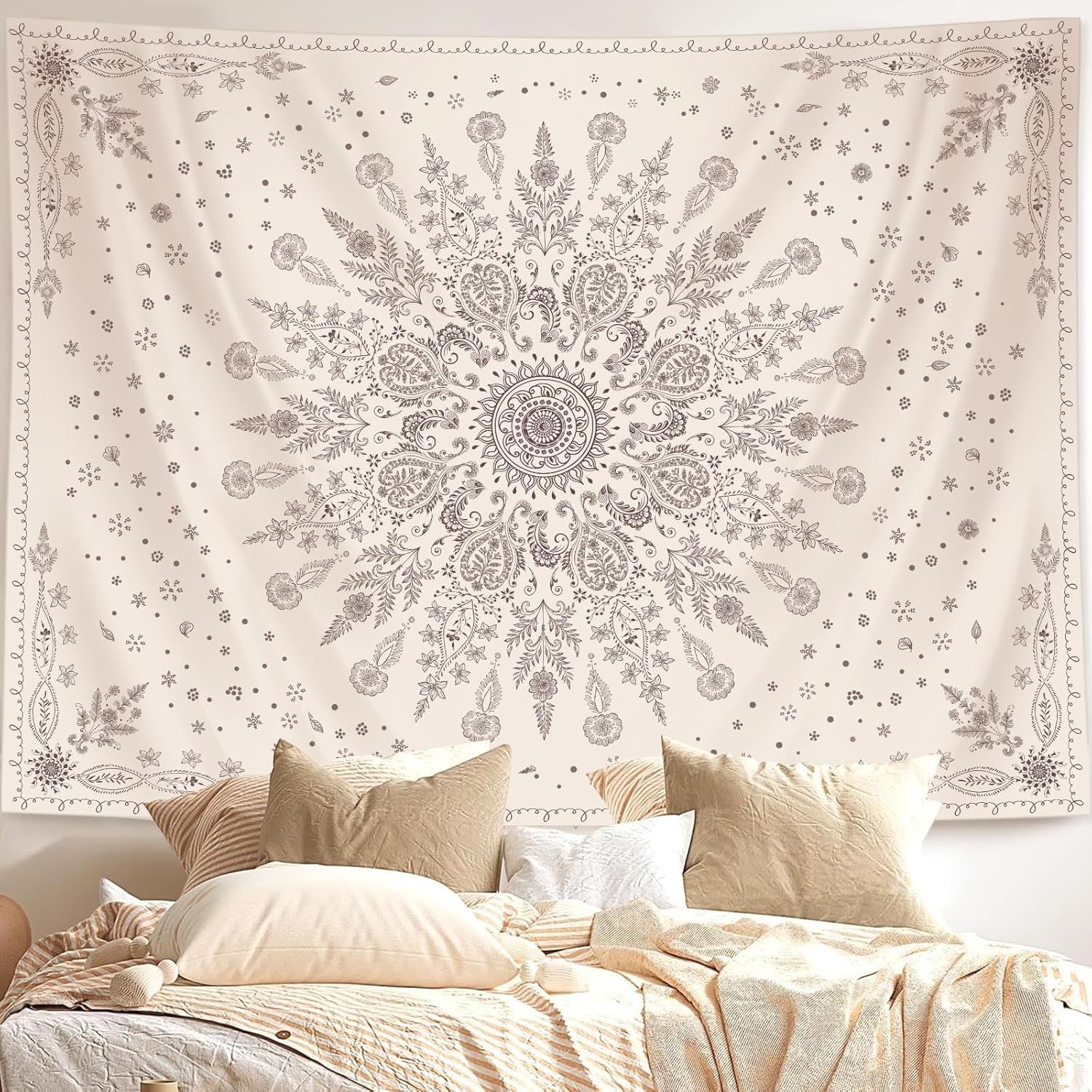 Lunerfex Boho Floral Tapestry Mandala Wall Tapestry, Cute Tapestries for Bedroom Beige Flower Tapestries Wall Hanging for Bedroom Living Room Decor Beige-1 60"x80"