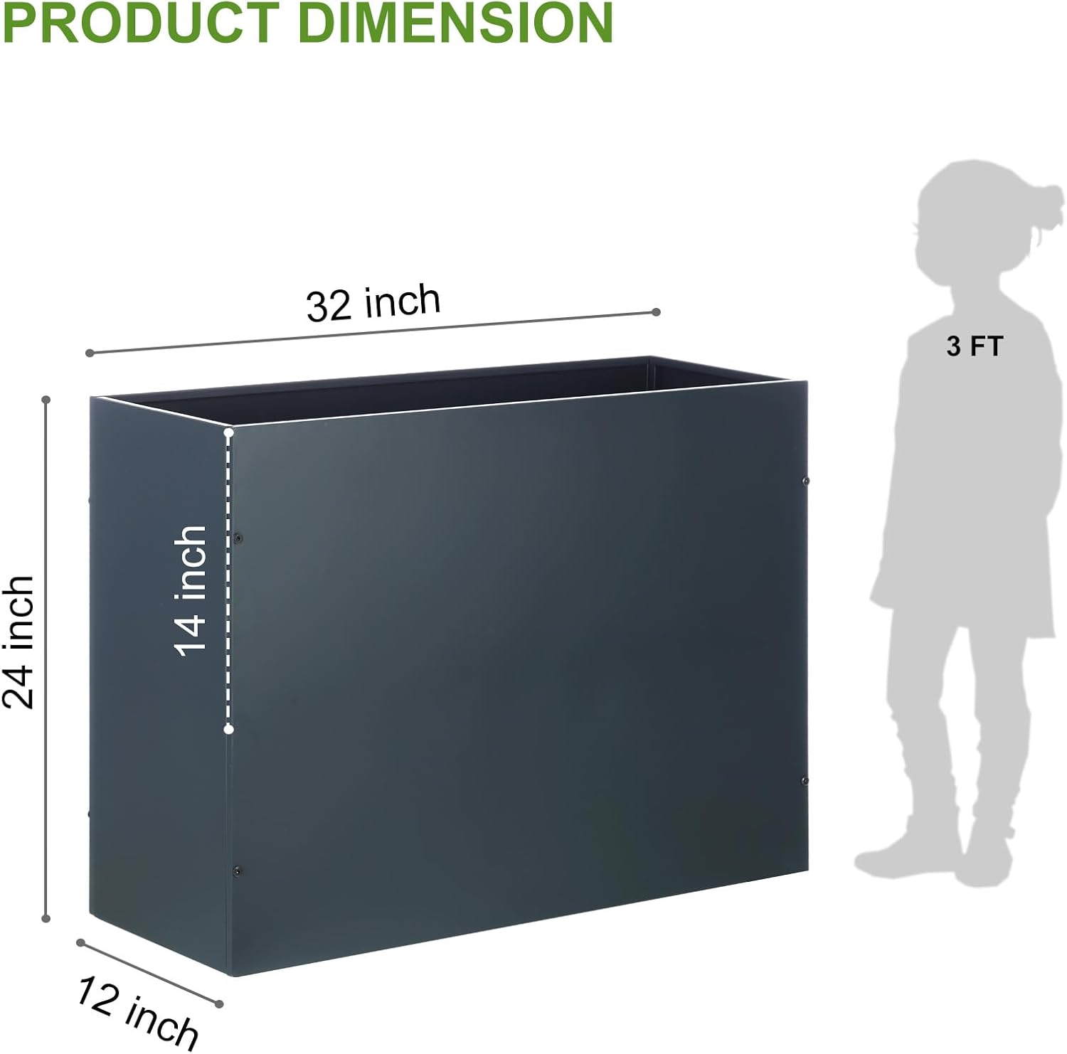 - Dimension: With a 32’’ L x 12’’ W x 24’’ H tall square planter that holds up to 2 cubic feet of soil, the planter box provides ample breathing and growing space for your vegetables and plants. With the accessories we provided, you can easily assemble the product and start to grow your plants