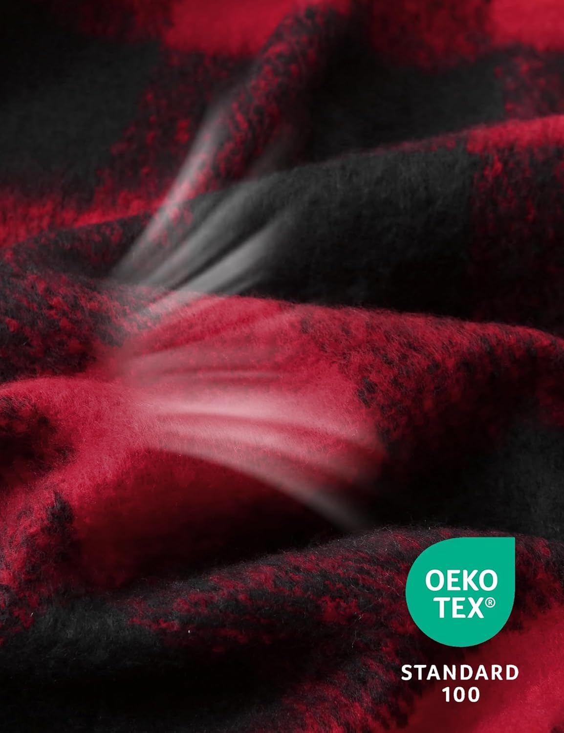 ZonLi Christmas Buffalo Plaid Throw Blanket, 50" x 60" Black and Red Decorative Blankets with Tassel for Couch, Bed, Sofa, Chair, Outdoor, Cozy Warm Lightweight Farmhouse
