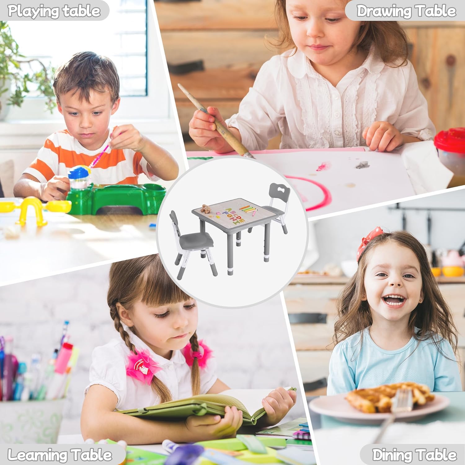 - Festival Surprise: GITAWUSA's kids table and chair set is the most suitable holiday surprise for boys and girls. It can be used for drawing, studying, eating, playing, and can be placed in classrooms, homes and daycare. If you are struggling with how to give your children a happy childhood, we think our kids table and chairs are the ideal choice.