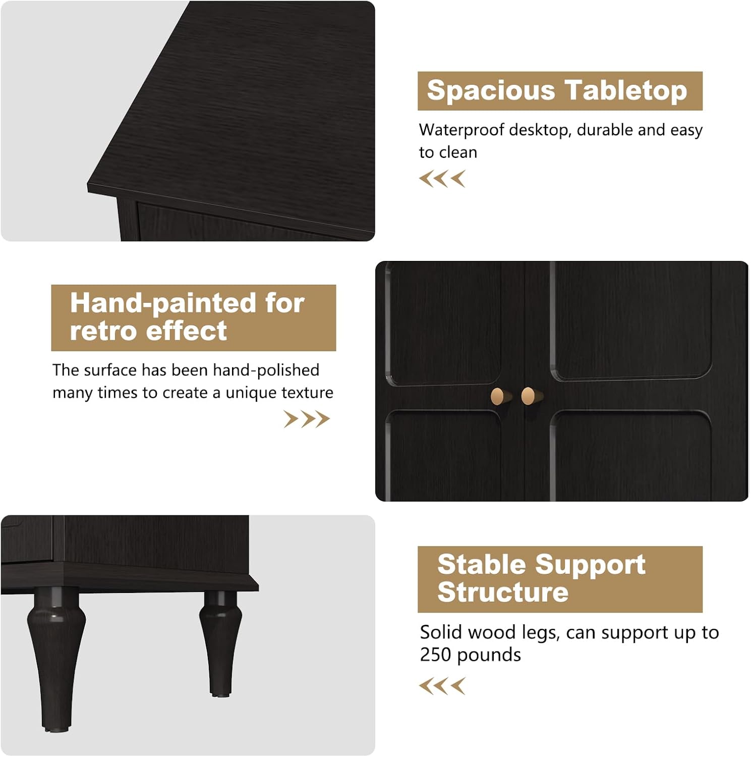 - 【Excellent craftsmanship】: The surface of the entertainment console is specially hand-processed to present a special texture. The 6 solid wood legs adopt the classic Roman column shape, presenting a unique medieval style. The back of the media center cabinet has cross-layered oval cable management holes to organize messy electronic wires.
