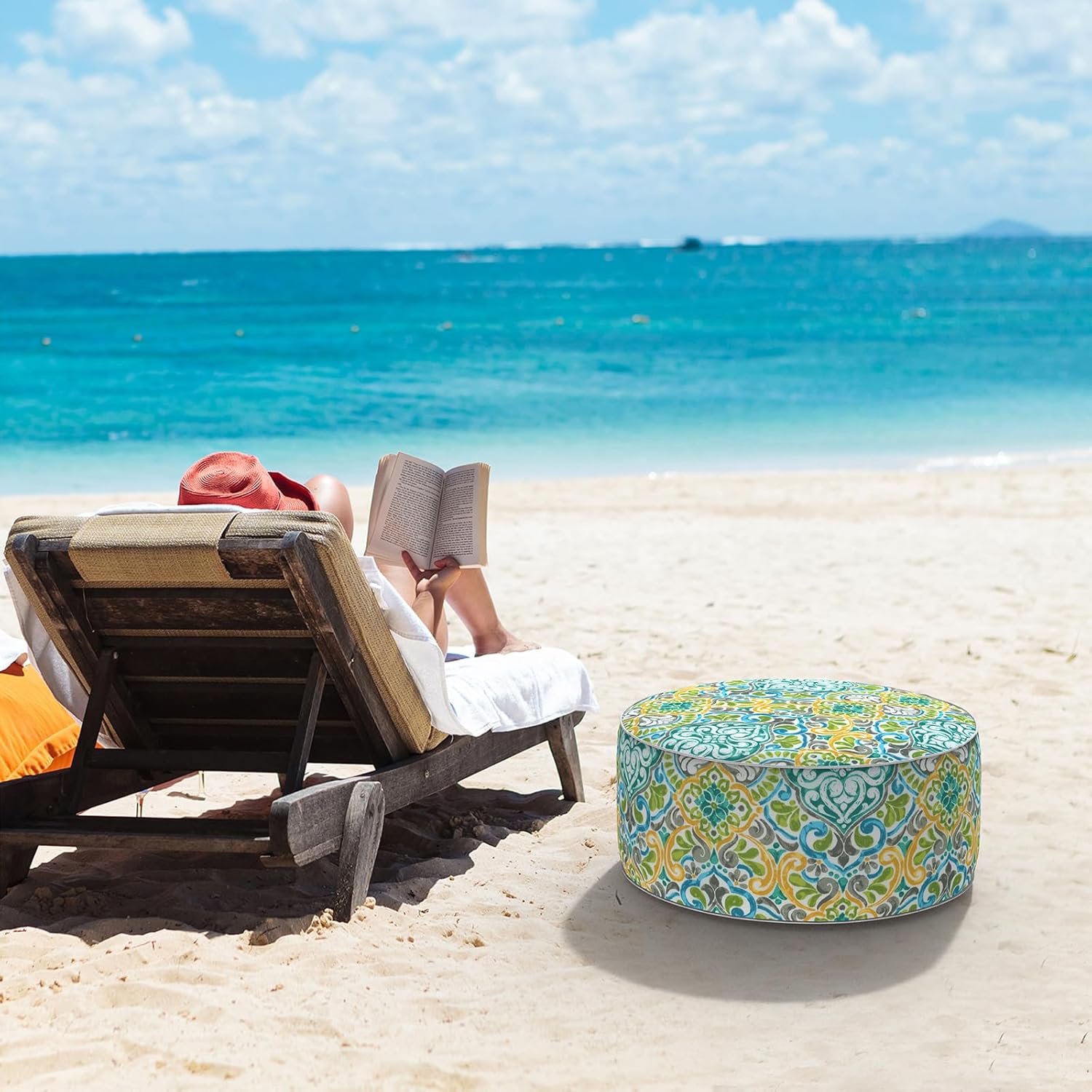 LVTXIII Inflatable Stool Ottoman Footrest with Handle, All Weather Foot Rest, Indoor or Outdoor Use for Home Patio Garden and Camping, D21 x H9, Damask Green