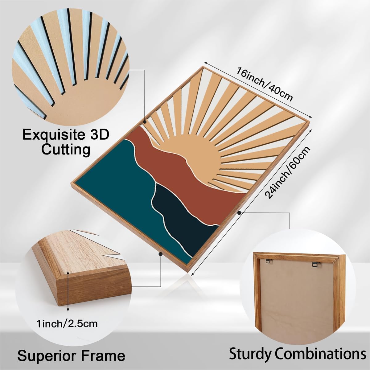 - 【Widely Use】This sun wall art has a unique style and can be integrated into various scenes, offices, bedrooms, living rooms, to create a visual focus for your space. Can also be used as anniversaries, holidays, birthday gifts to family and friends, to pass on your heart.