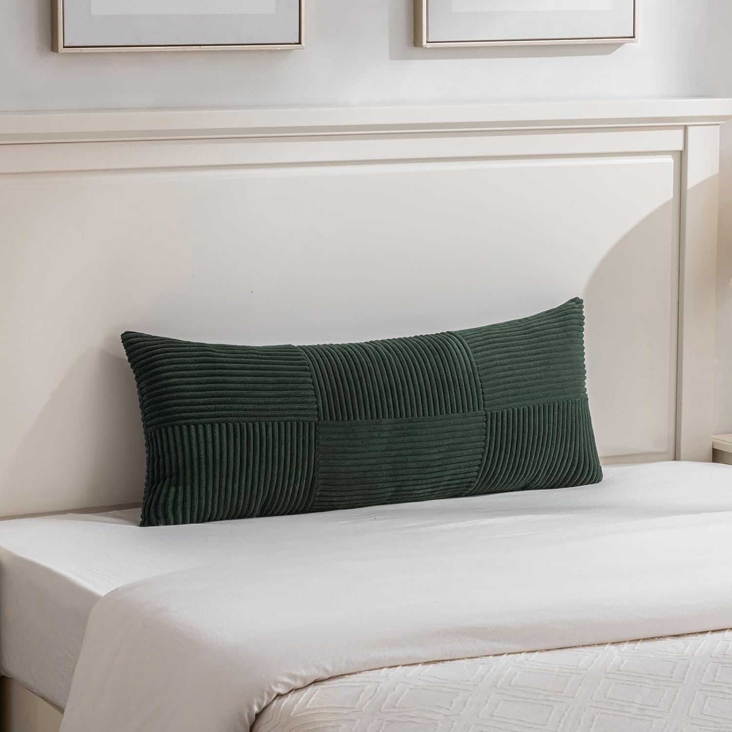 Fancy Homi Set of 2 Dark Green Boho Long Lumbar Body Decorative Throw Pillow Cover 14x36 Inch for Bed Couch Bedroom Bench, Soft Patchwork Corduroy Textured Pillow Case, Rustic Farmhouse Room Decor