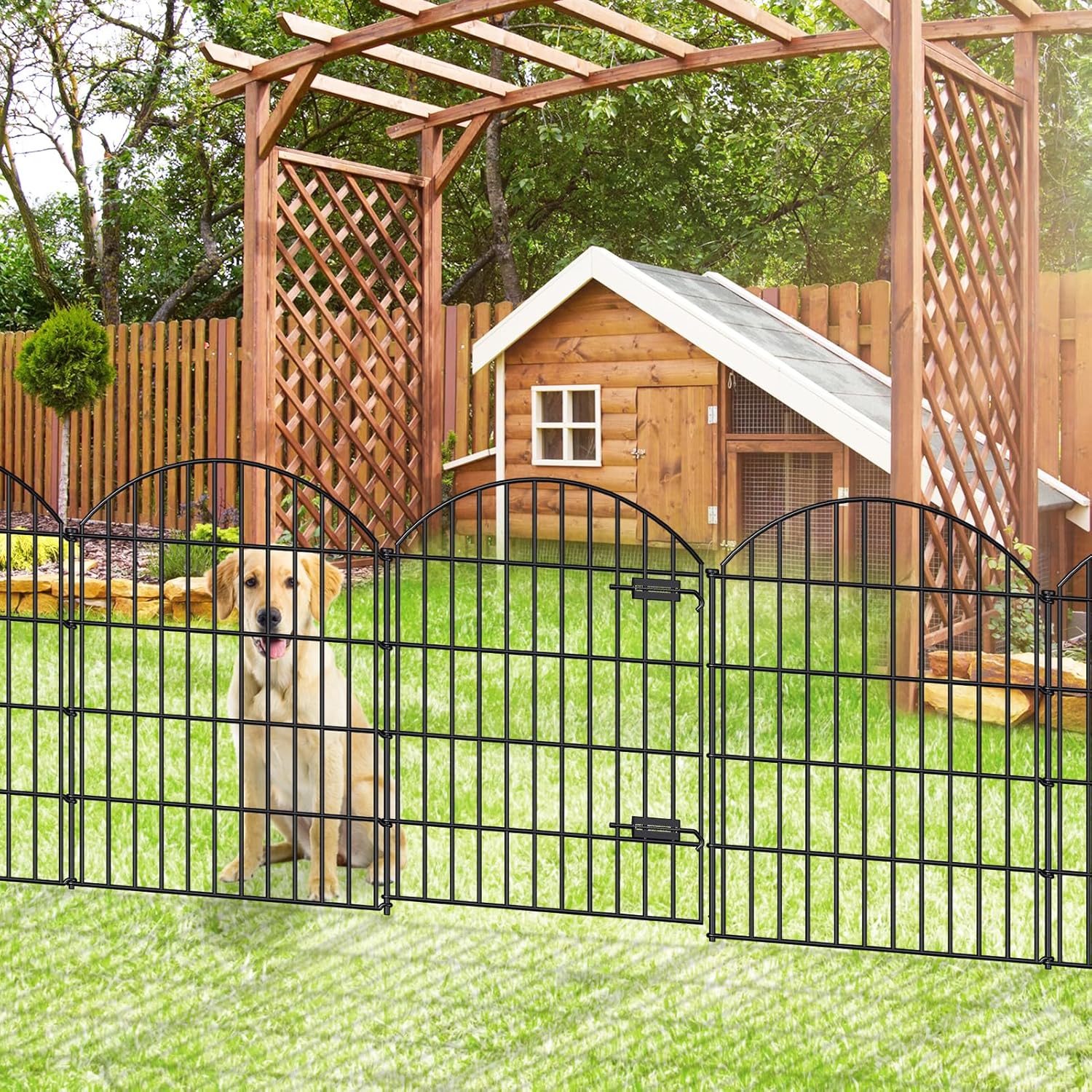 - STURDY AND STABLE: This garden gate and fences is welded by Gauge 9 thickness iron wires, the stakes are 10mm in diameter, and can be extended pretty far into the ground which is fairly steady, it works well as a fence with gate for big or medium size dogs.