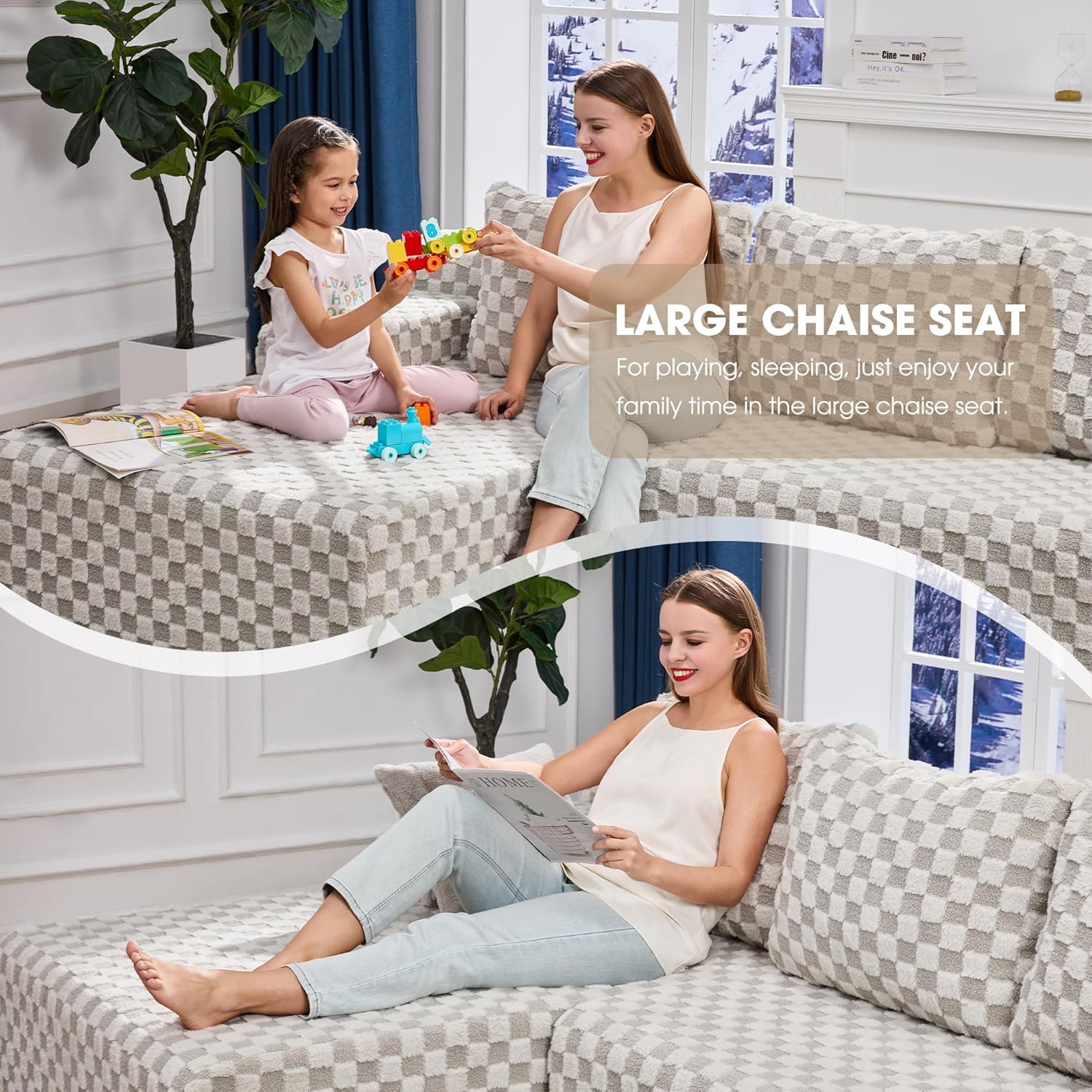 - Versatile and Flexible Modular Sofa: Our sectional sofa couch consists of 2 L-shaped oversized chaises, each L- shape sofa is lightweight. This modular sectional couch have 4 using modes, you can convert the modular sectional sofa according to your needs. add flexibility and personalized style to your living space.