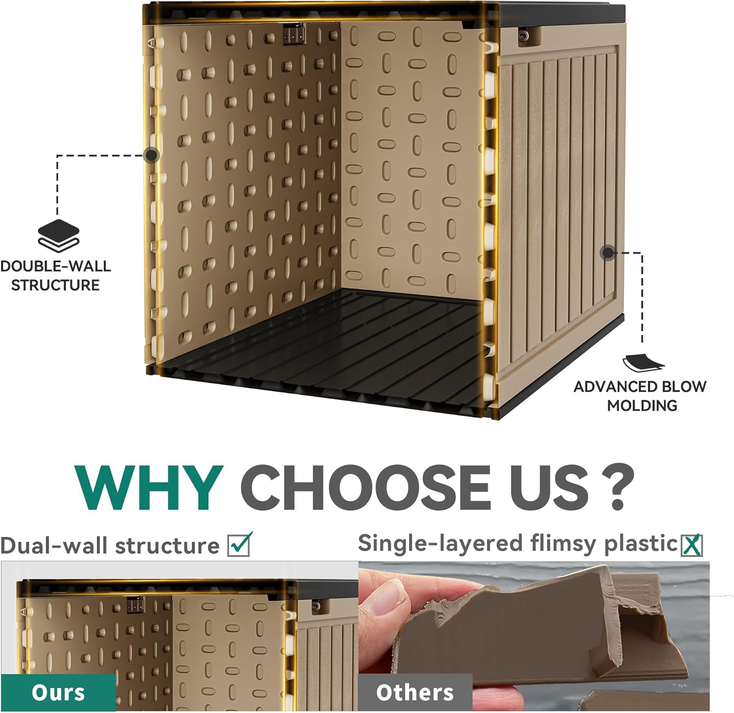 - Double-layer Structure: This deck box features a double-layer design that maximizes durability and strength, while the wood grain texture complements any decor; Made from weatherproof resin that’s rust-resistant, corrosion-resistant, and maintenance-free