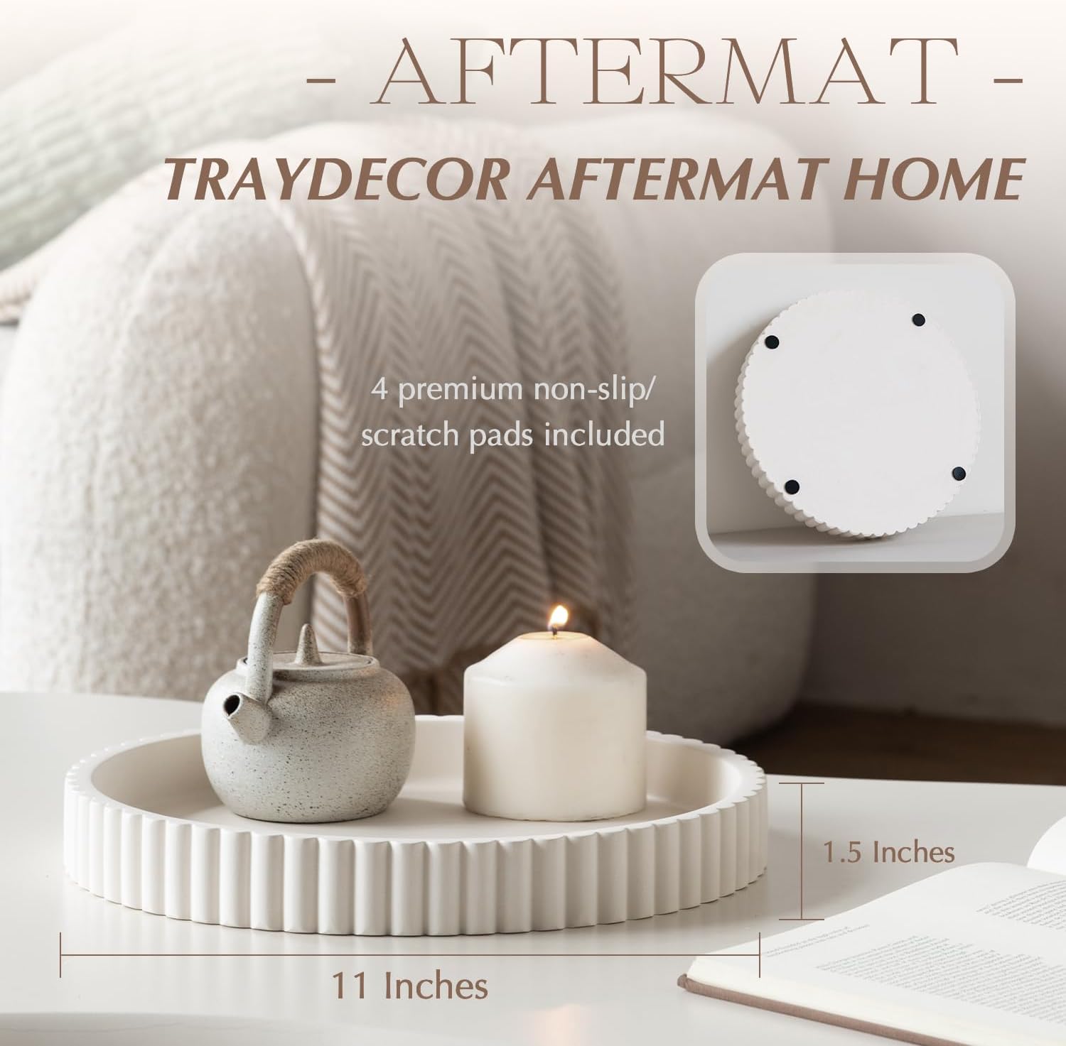 - Timeless Aesthetic: Inspired by clean Scandinavian design elements, it's a neat little solution to keep everything in check. The grooved concrete bestows upon the AFTERMAT tray a sense of modern elegance, harmonizing exquisitely with understated home décors.