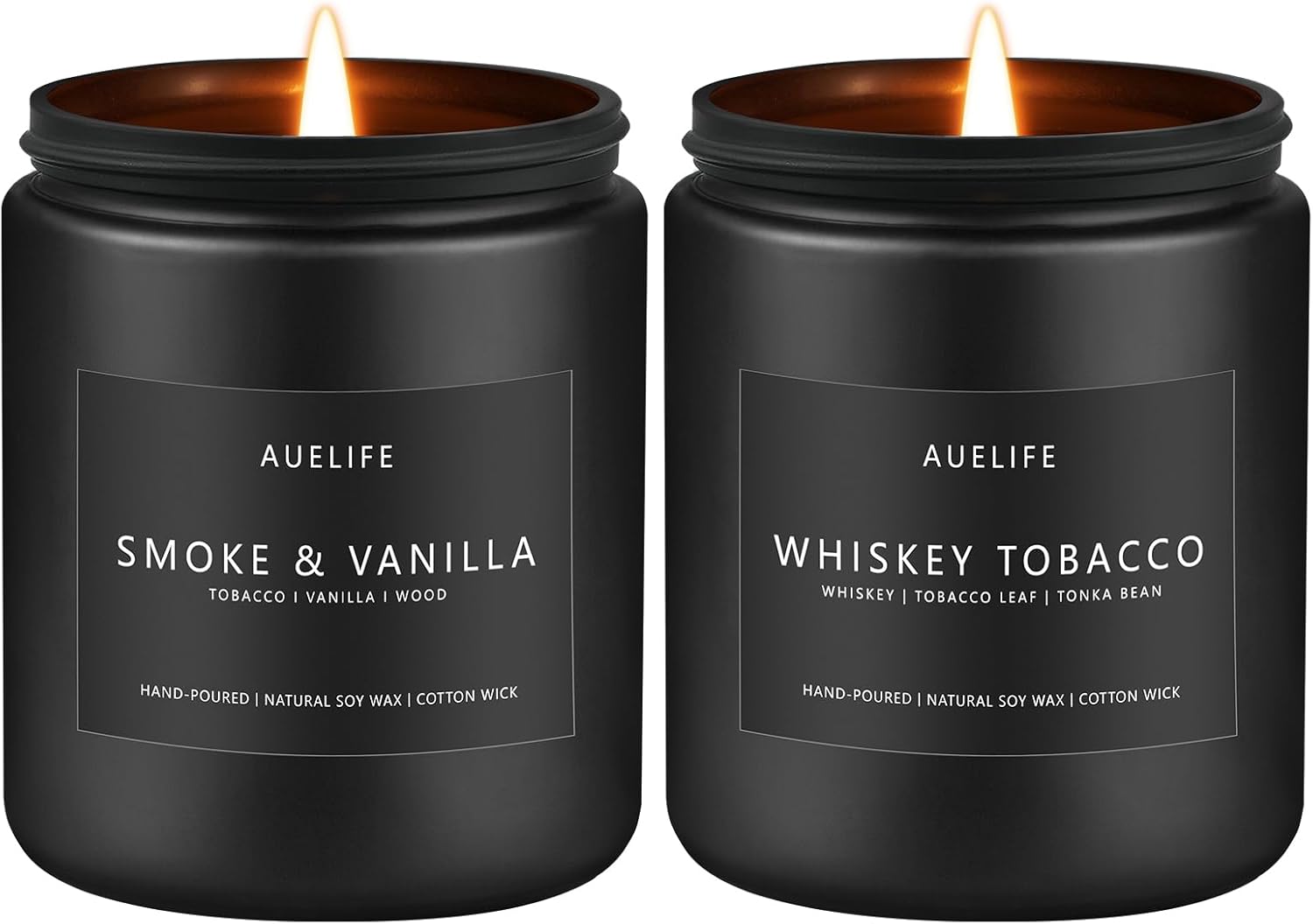 2 Pack Candle | Smoke & Vanilla + Whiskey Tobacco - Candles for Men - Masculine Candle, Soy Candles for Home Scented - Gifts for Men, Home Fragrance Manly Gifts - Each of 7oz