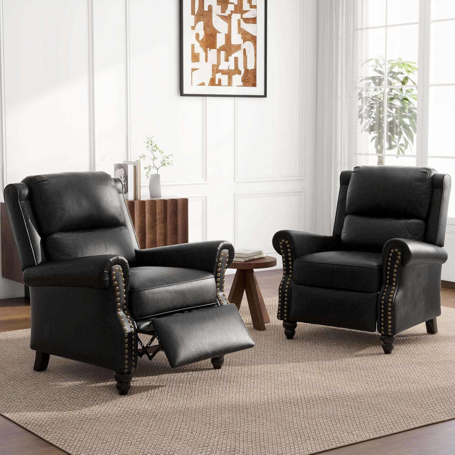 UIXE Pushback Recliner Chairs Set of 2, PU Leather Armchair Push Back Accent Chair, Rivet Trim Club Chair Home Theater Overstuffed Single Sofa Reading Seat for Living Room, Black