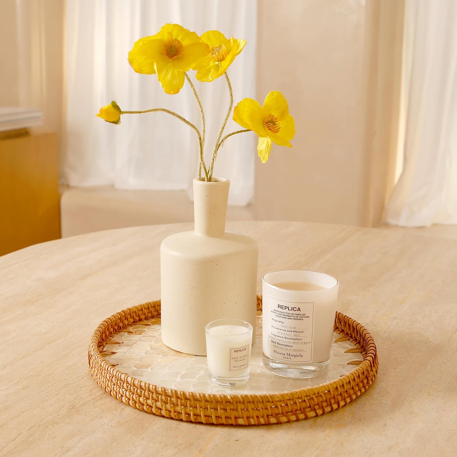 - Handwoven with Care: Each tray is carefully woven by skilled artisans, natural rattan texture and the subtle shine of seashells, reflecting a high level of craftsmanship and attention to detail