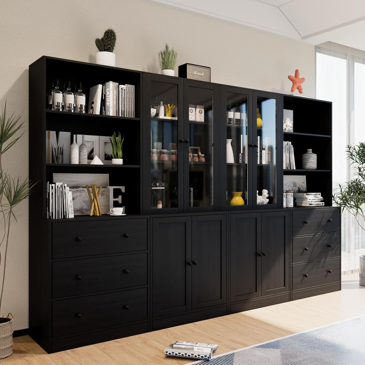 - DIY Your Cabinets: Customize your storage space with 3 drawers, 3 open shelves, 2 hidden shelves, and 3 shelves with glass doors. Perfect for bookcases, kitchen shelves, and display cabinets.