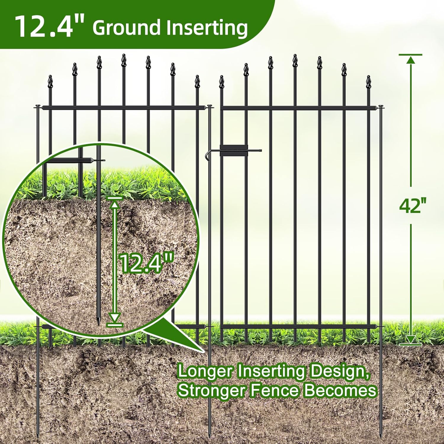 Metal Garden Fence with Gate 42 in H x 12 ft L, 1 Gate + 5 Panels Border Dog Fence Panels Animal Barrier, No Dig Garden Fencing for Yard Patio Flower Bed Lawn Outdoor, Arch Black