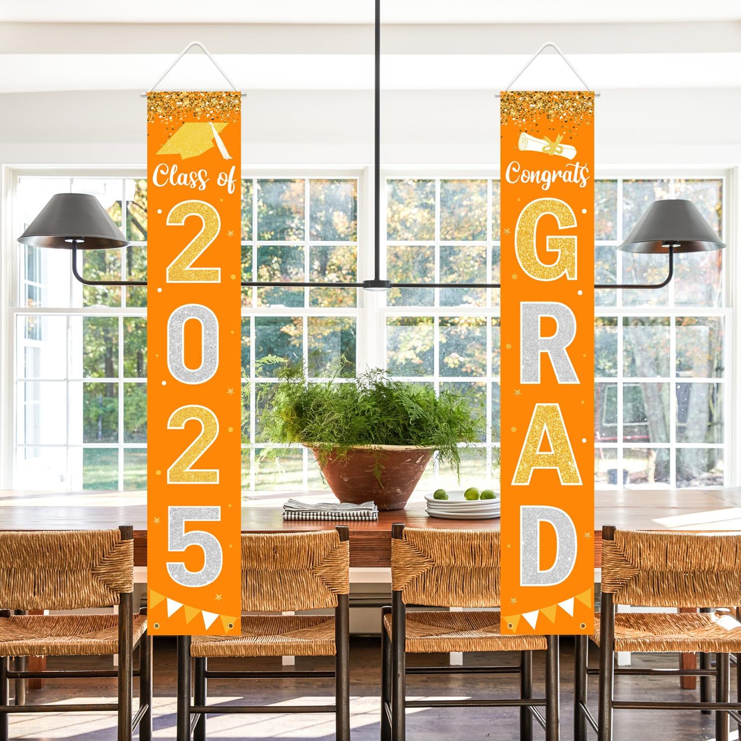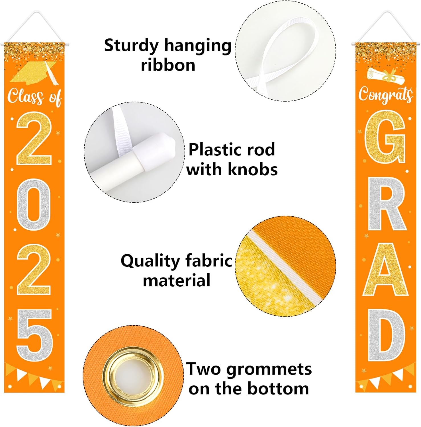 Graduation Decorations 2025 GRAD Banner Orange Porch Door Sign Welcome Banner For Indoor Outdoor Wall Graduation Decorations Class of 2025