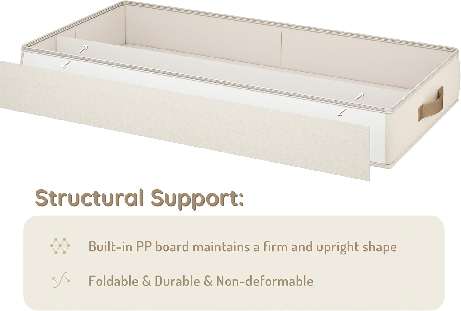 - 【High-end Fabric & Large Capacity】Made from high-end, durable fabric, our under bed storage bags measure 33.7"L x 17.1"W x 6"H inches, providing generous space for all your storage needs. Perfect for storing seasonal clothing, blankets, comforters, and more, these containers combine ample space with an elegant beige design to seamlessly fit any room