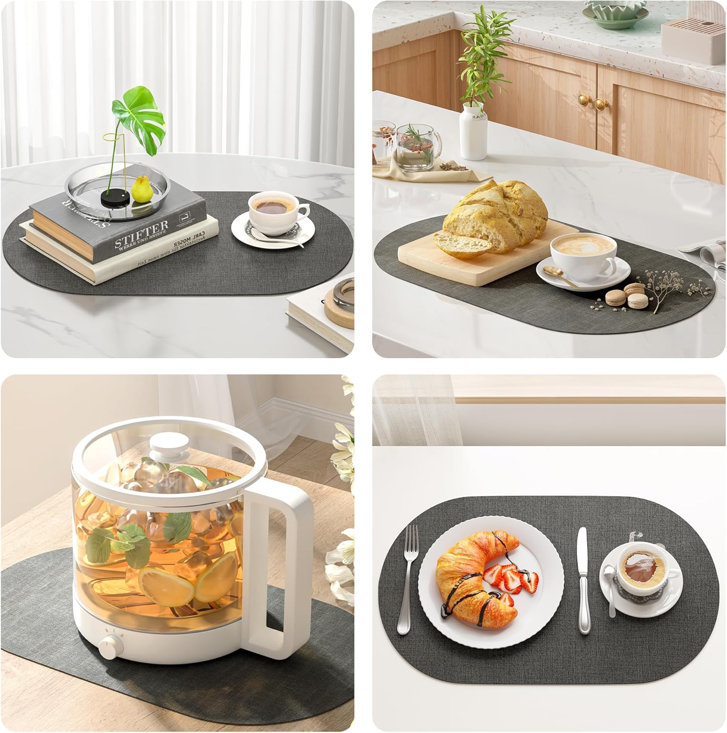 - Non-Slip: Say goodbye to slipping placemats! The bottom of our large oval placemats boasts a clever non-slip design that keeps them firmly in place on your tabletop. This not only saves your tables from scratches, stains, and messy accidents but also ensures a smooth and comfortable dining experience, whether it's a family gathering or a business lunch