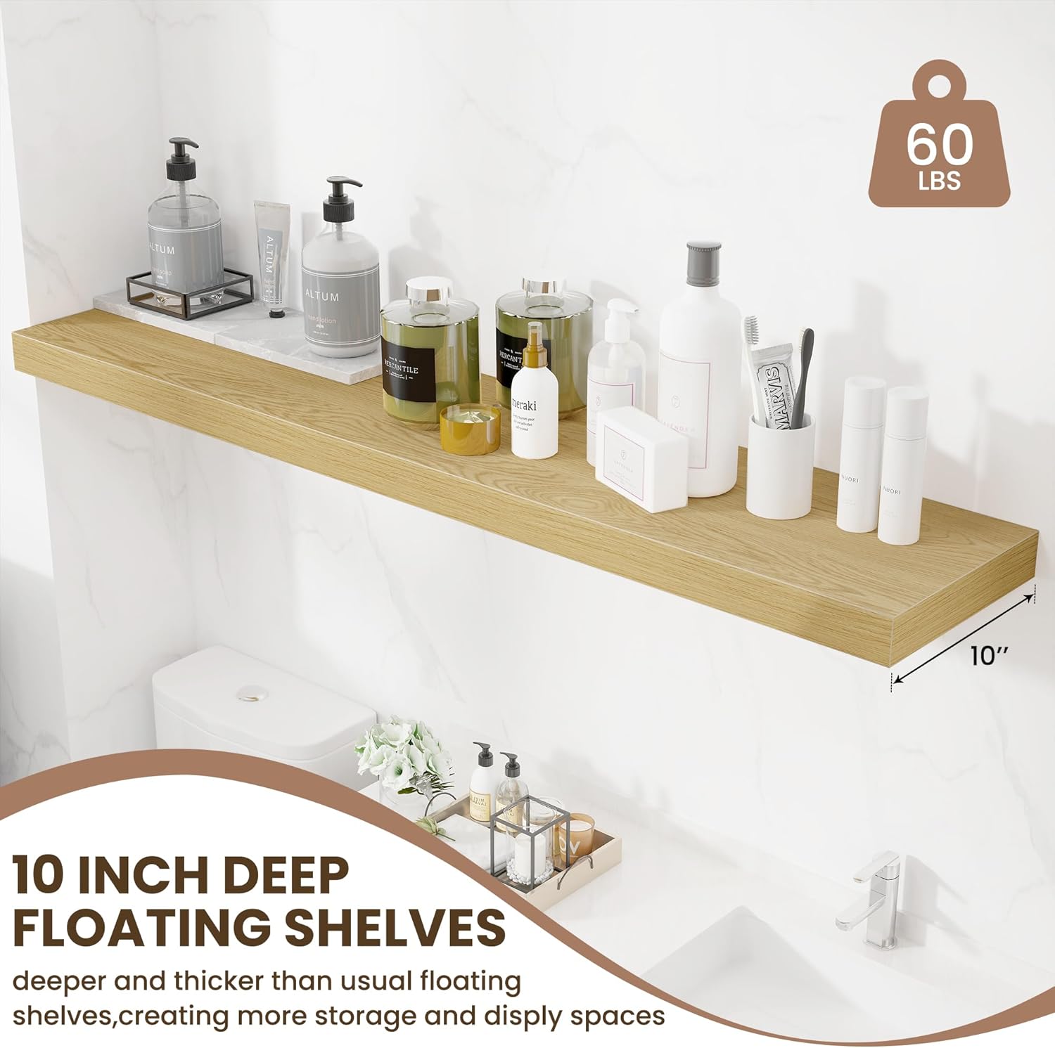- STYLISH & PRACTICAL: These 10-inch deep floating shelves offer a simple rustic charm and are made from permium engineered wood. With their smooth, natural finish, they add warmth and personality to any room, fitting seamlessly into both modern and classic interiors