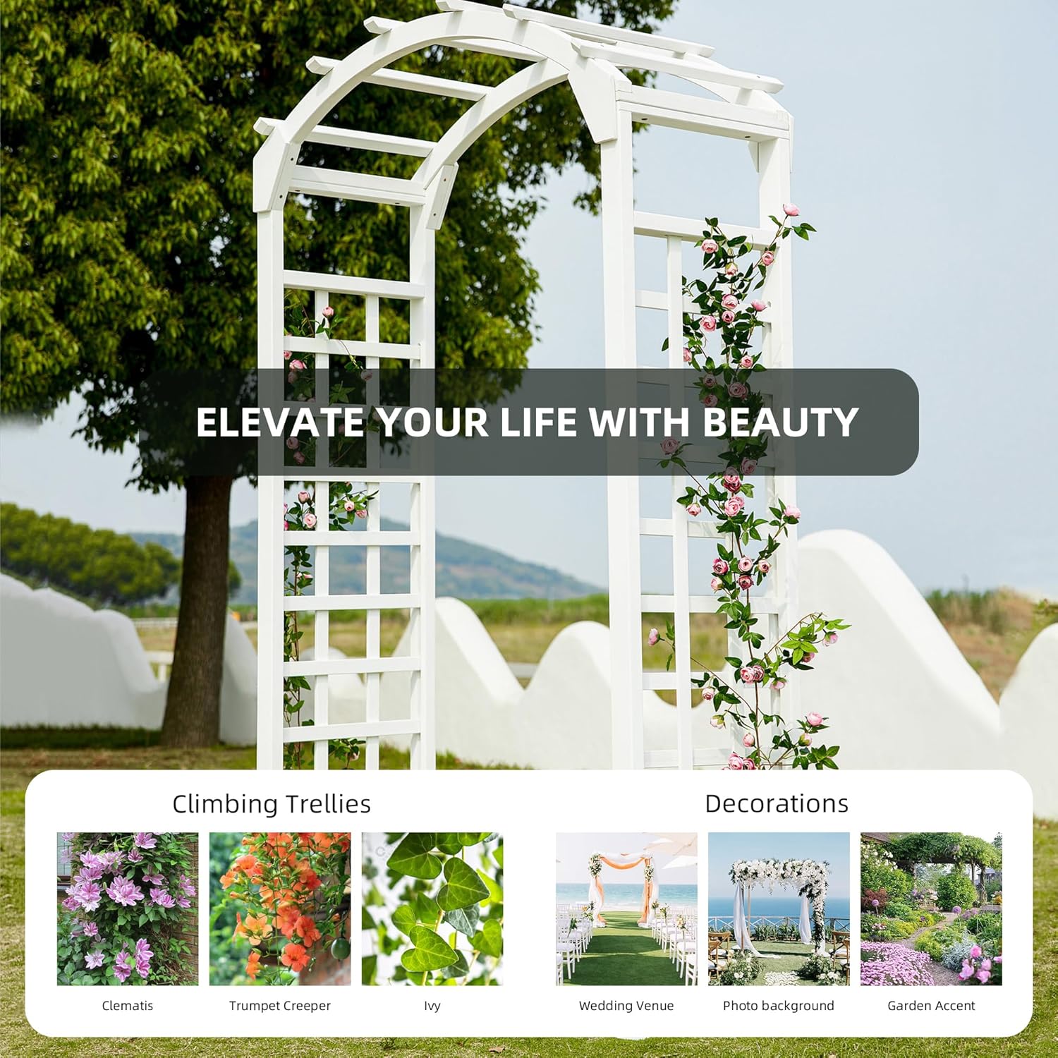 Solid Fir Wooden Garden Arch Premium Outdoor Trellis for Climbing Plants, 84.5”H×49.37”W×23.5’’D, Also can be Used for Wedding and Party Decoration