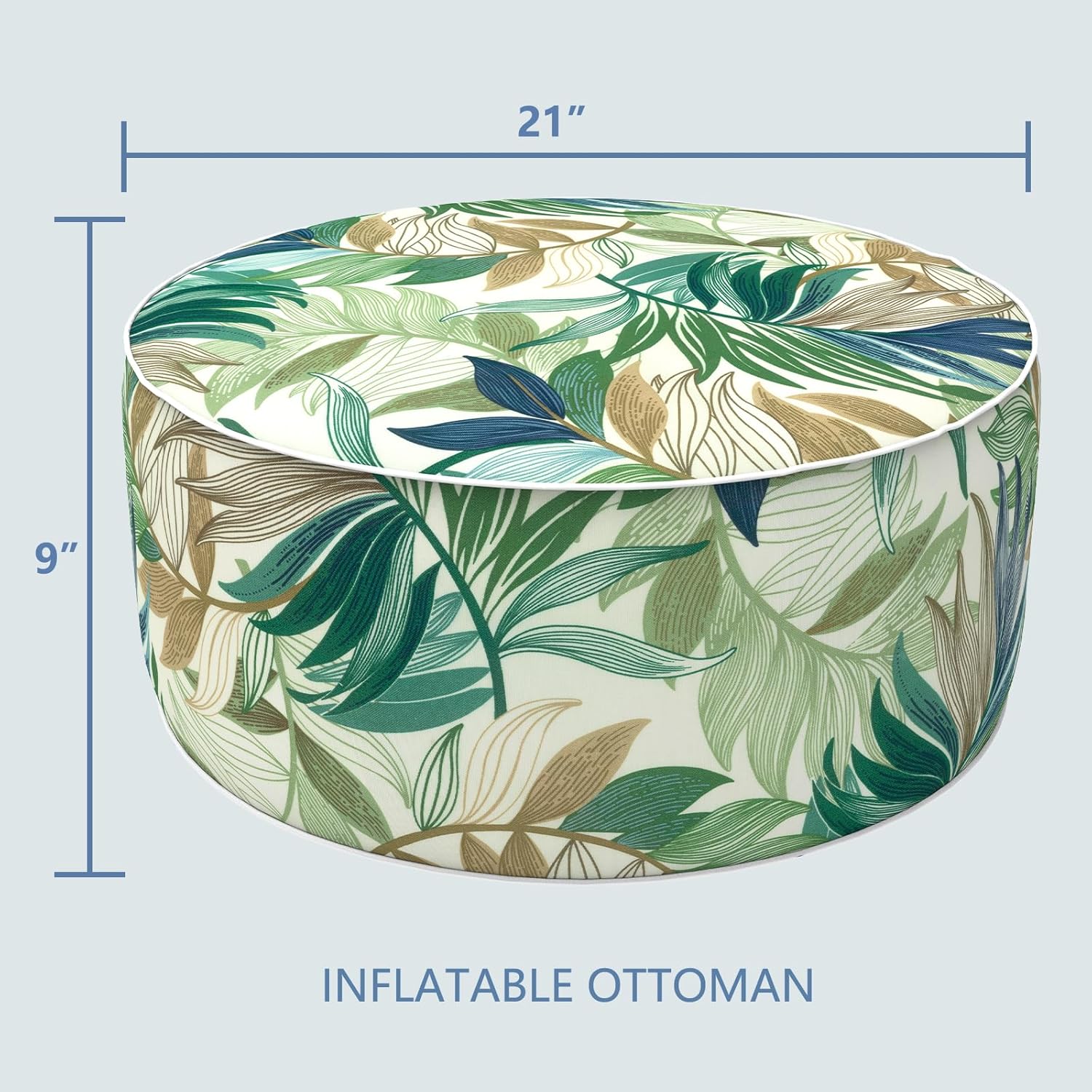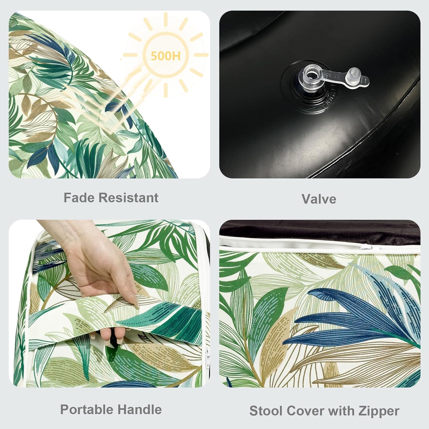 LVTXIII Inflatable Stool Ottoman Footrest with Handle, Decorative Fade-Resistant Foot Stool, Indoor or Outdoor Pouf for Home Garden and Camping Use, D21 x W 21 x H9, Lush Leaf Green