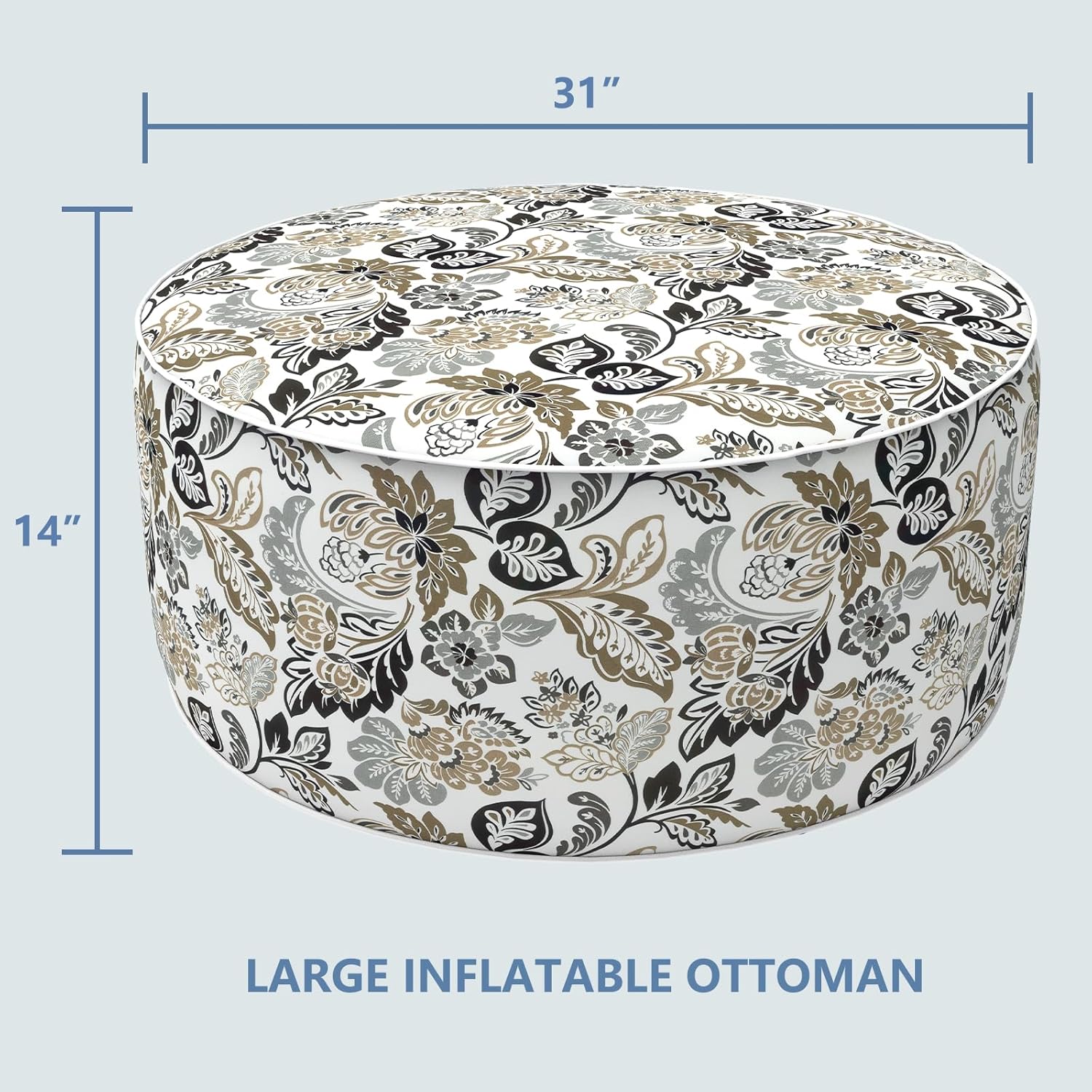 - COMPONENTS: This value bundle come with 1 pcs outdoor/indoor inflatable ottoman measures D31” x H14”. Made of durable and soft polyester fabric, sturdy inflatable PVC liners. INFLATOR IS NOT INCLUDED