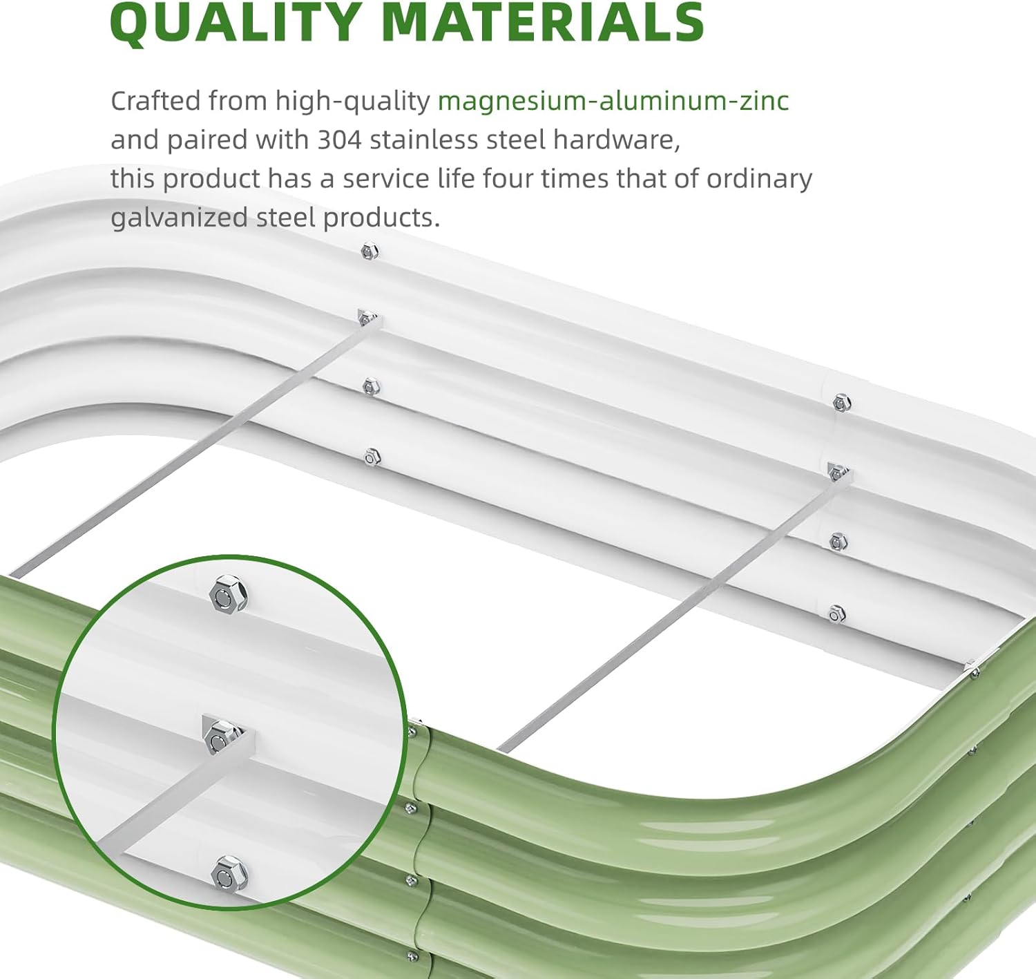 - Sturdy and Durable Materials: Made from high-quality zinc-magnesium aluminum alloy steel, this raised flower bed is built to withstand the elements while providing a secure environment for your plants to thrive. With a remarkable lifespan of over 30 years, this garden bed is built to withstand the test of time.