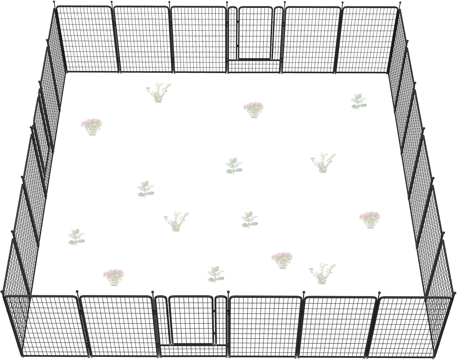 FXW Garden Fence Outdoor for The Yard – 50in(H) x 60.2ft(L) Heavy Duty Metal Animal Barrier for Dog and Rabbit, Decorative Dog Fence, 24 Panels, Black