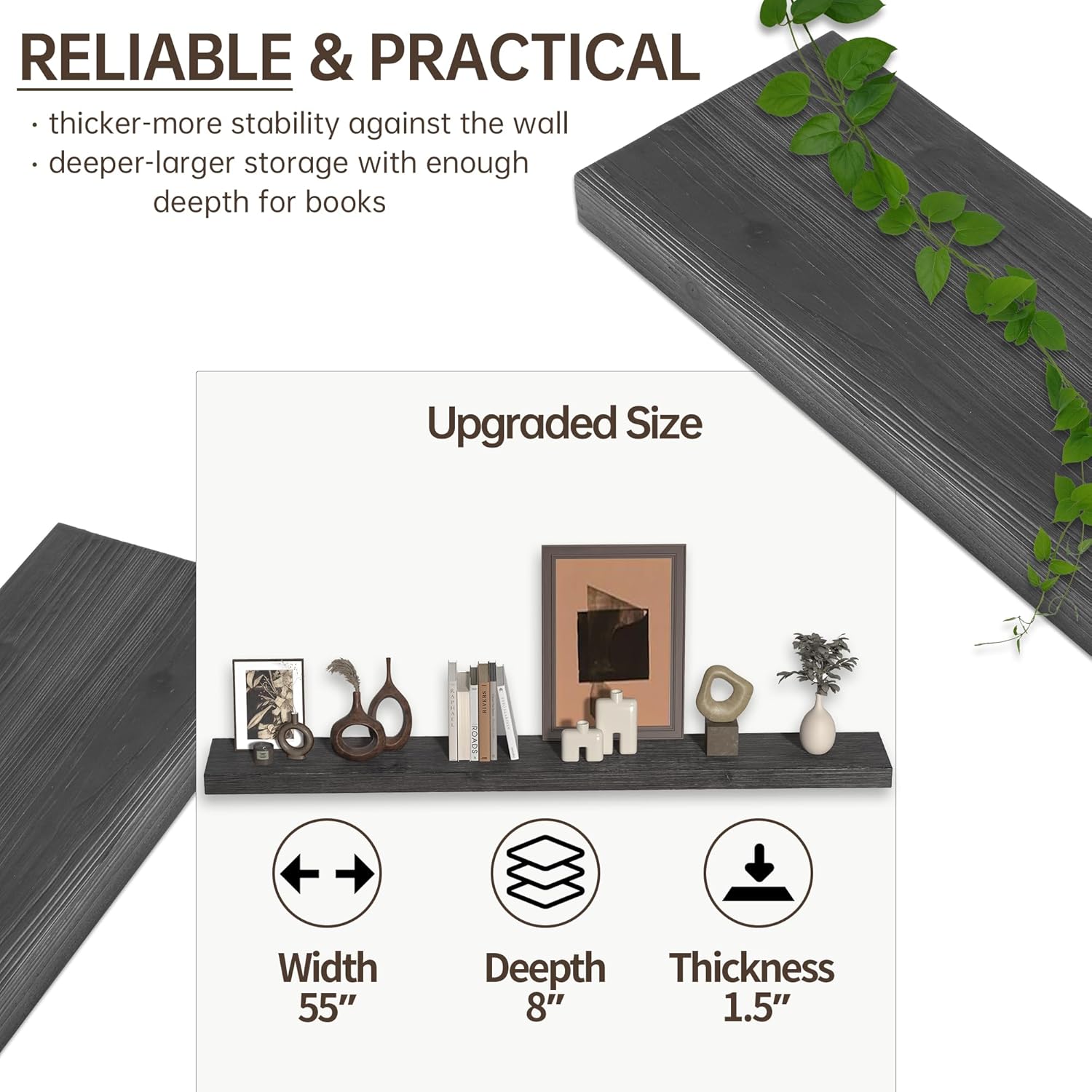 Floating Shelves for Wall, USA-Sourced Fir Wood 55 Inch Wall Shelves Set of 1, Natural Rustic Solid Wooden Floating Shelves Wall Mounted, Nursery Book Storage Shelf, Display Shelf for Bathroom