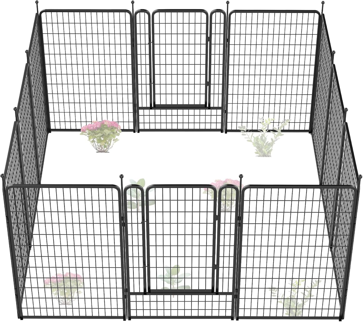 FXW Garden Fence 50in(H) x 30.1ft(L), 12 Panels Decorative Dog Fence Outdoor for The Yard – Heavy Duty Metal Animal Barrier for Dog and Rabbit, Easy Setup, Black