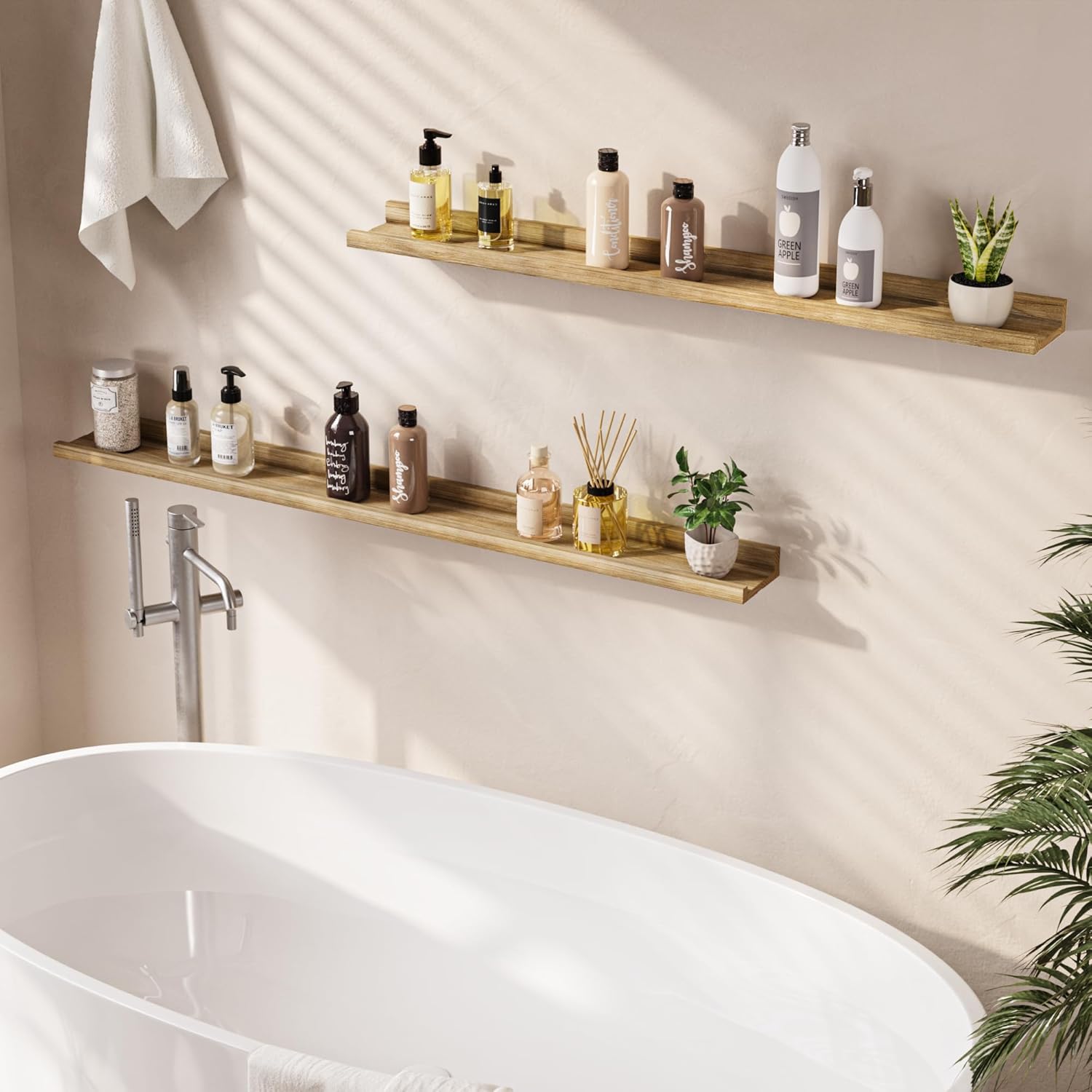 - Thoughtful Design: Featuring a ledge design with a subtle lip, these shelves offer a stylish and secure way to display your favorite items, from artwork and photos to small plants and collectibles. The clean, modern design adds sophistication to any space.