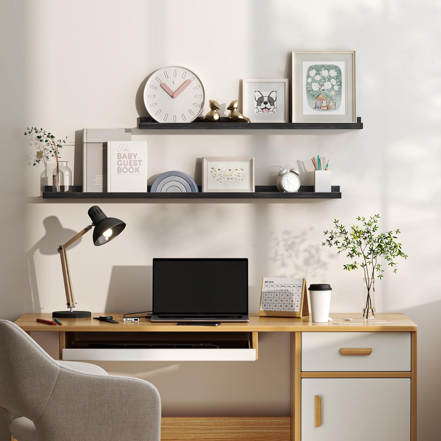 - Quick and Easy Installation: With pre-drilled holes, necessary hardware, and easy-to-follow instructions, our picture ledge shelves are a breeze to install. Each set even comes with a mini level for perfect alignment. Put them up in minutes and start decorating right away!