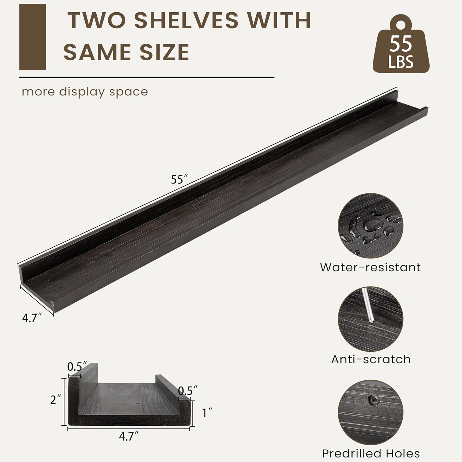 - Quick and Easy Installation: With pre-drilled holes, necessary hardware, and easy-to-follow instructions, our picture ledge shelves are a breeze to install. Each set even comes with a mini level for perfect alignment. Put them up in minutes and start decorating right away!