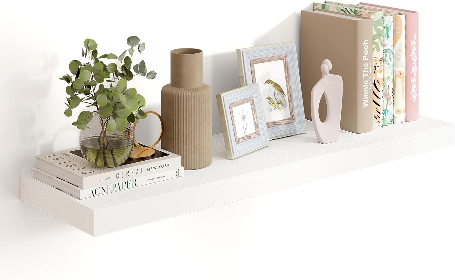 Heimlove 36 Inch White Floating Shelves for Wall,10 Inch Deep Wood Shelves with Invisible Brackets,Wall Mounted Storage & Display Shelves for Bedroom,Living Room,Kitchen,Office