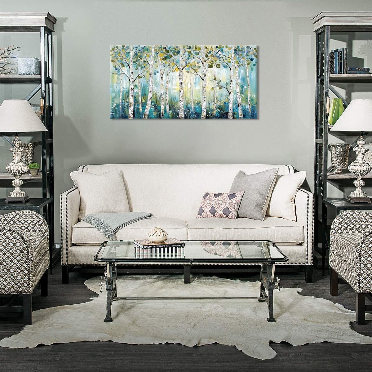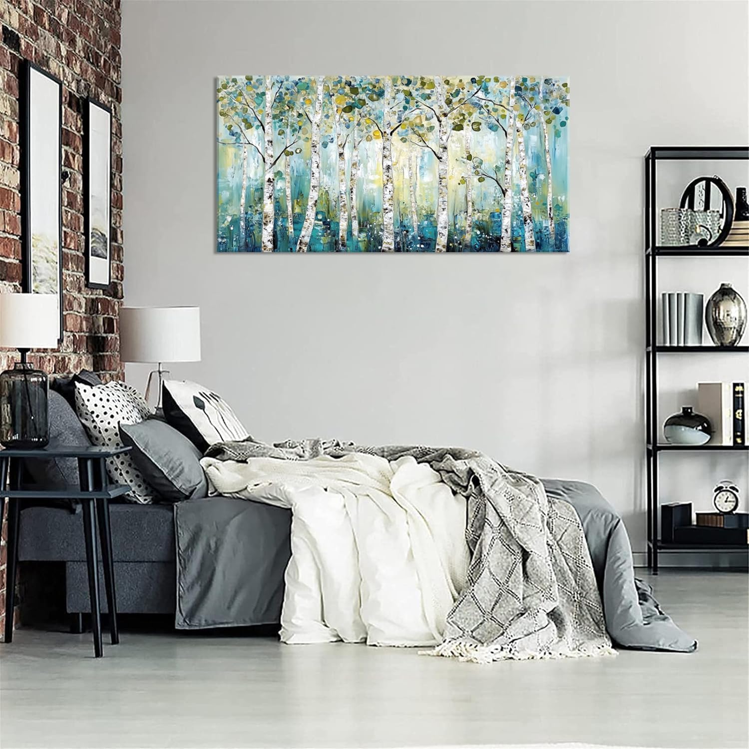 LASMOND Abstract Teal Grove Canvas Paintings Prints Modern Tree Wood Artwork Decor Wall Art for Living Room Bedroom Offices (30x16 Inches)