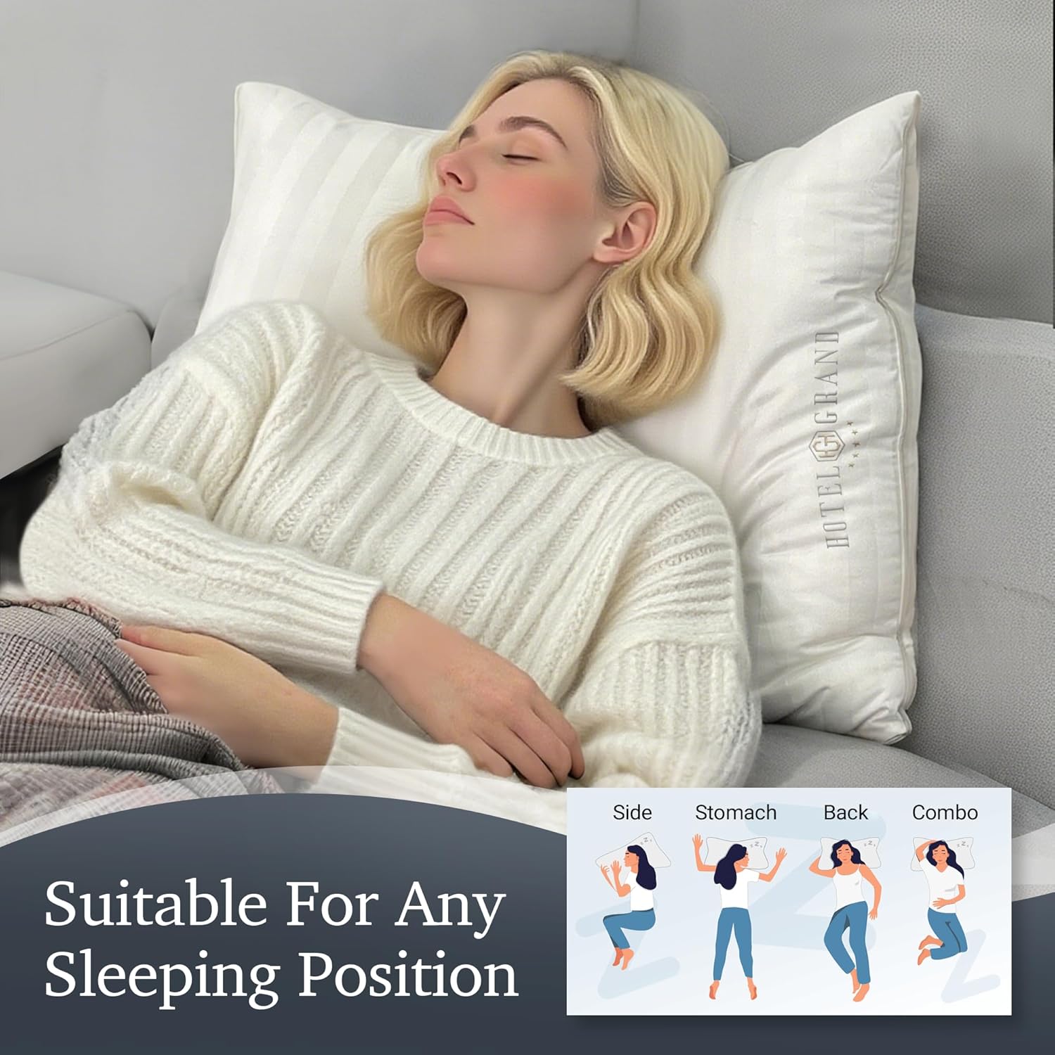 - [Perfect for Back/Side Sleeping Pillows] Specially designed for both side and back sleepers, our pillow makes every night's rest effortless. With premium stitching and reinforced seams, the fill stays perfectly in place, and you'll never have to worry about feathers or down poking through.