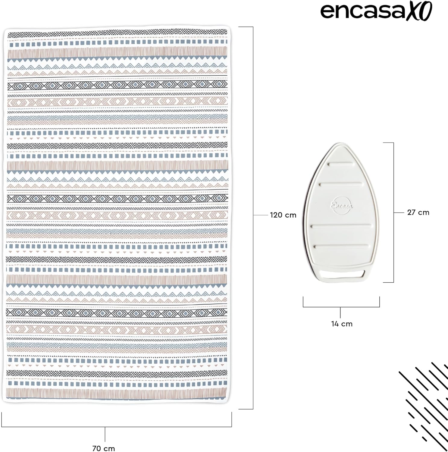 Encasa XO Ironing Mat/Pad (Large 48"x28") with 3mm Padding & Silicone Iron Rest for Steam Pressing on Tabletop or Bed - Heat Resistant, Portable, Quilting & Travel Blanket - Aztec
