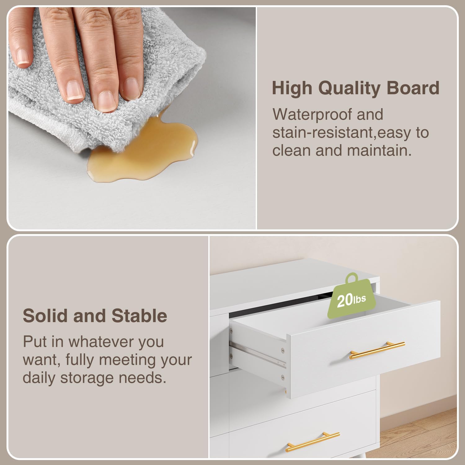 - 6 Drawer Dresser: This white dresser comes with 5 wooden legs and 6 metal handles, stylish and beautiful, compatible with different room styles and decors