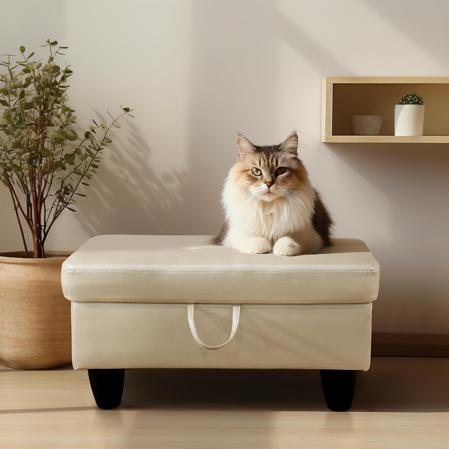 - PREMIUM MATERIALS: This storage ottoman features a thick foam cushion for added comfort. Built with a sturdy solid wood frame and durable plastic feet, it offers long-lasting quality while protecting your floors from scratches. The easy-to-clean faux leather surface gives it a sleek, modern look, and the smooth faux leather lid adds an extra layer of comfort for sitting. Perfect for any room, this ottoman combines style, durability, and functionality.