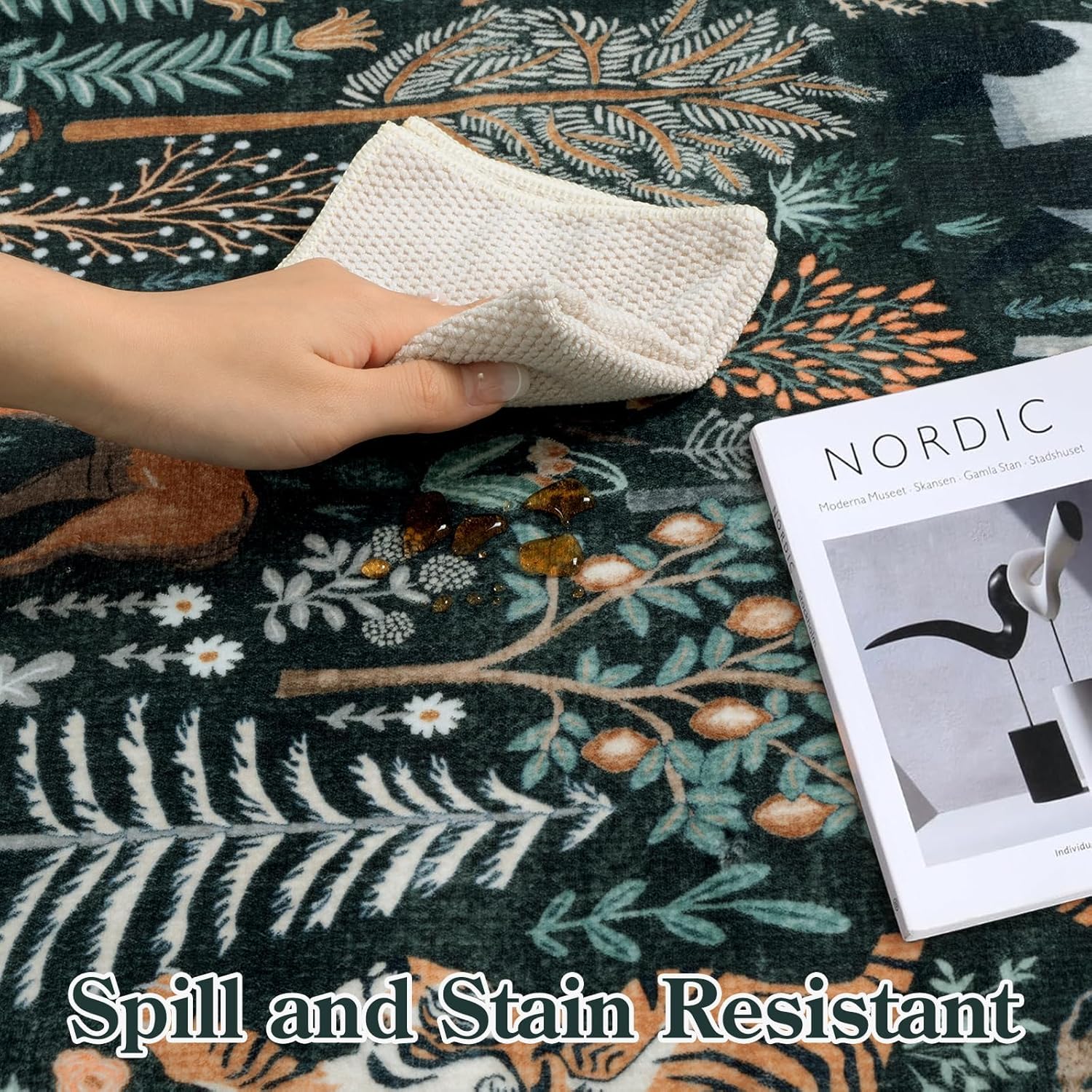 - Non-Slip & Ultra-Thin: The skid-resistant TPE backing can keep the rugs in place effectively, suitable for households with children, pets, or messy hobbies. This rug is ultra-thin, allowing it to be easily placed under furniture