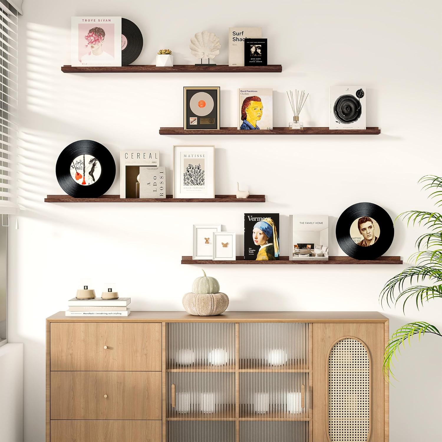 Picture Ledge Shelf for Wall, Floating Shelves Set of 4, 48 Inch Long Nursery Book Shelves for Toys Storage, Kids Bookshelf Wall Mounted for Books Photo Frames, Walnut