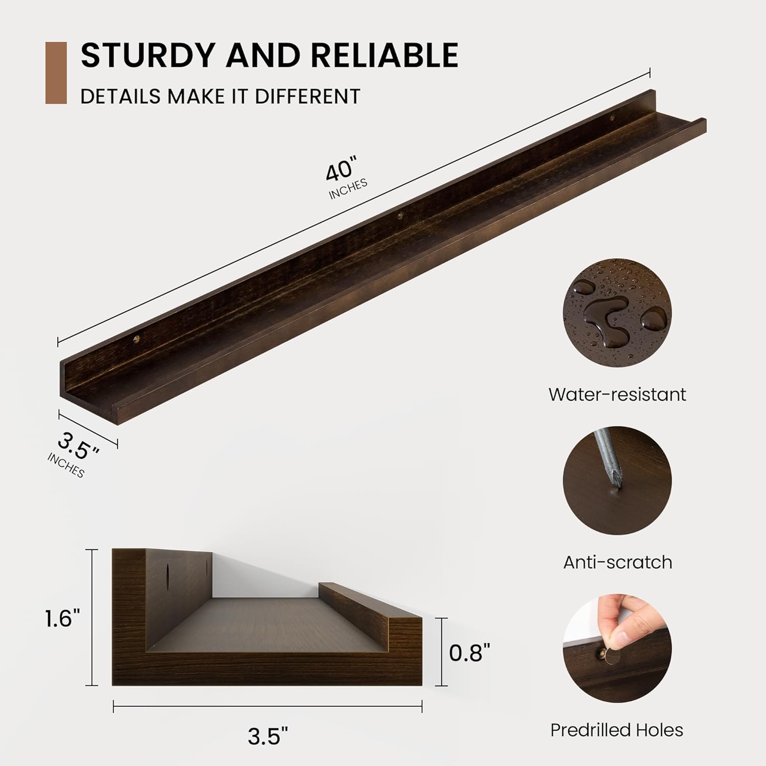 - 3.5" Floating Picture Ledge: Anti-Slip Narrow Design-3.5" ultra-narrow depth holds frames/plants without sliding, even on angled walls. Stud-Mounted Stability-16" pre-drilled holes match standard studs (hardware incl.) for wobble-free install. Clutter-Free Aesthetic-Clean lines blend with farmhouse/Scandinavian decor, focusing on your treasures