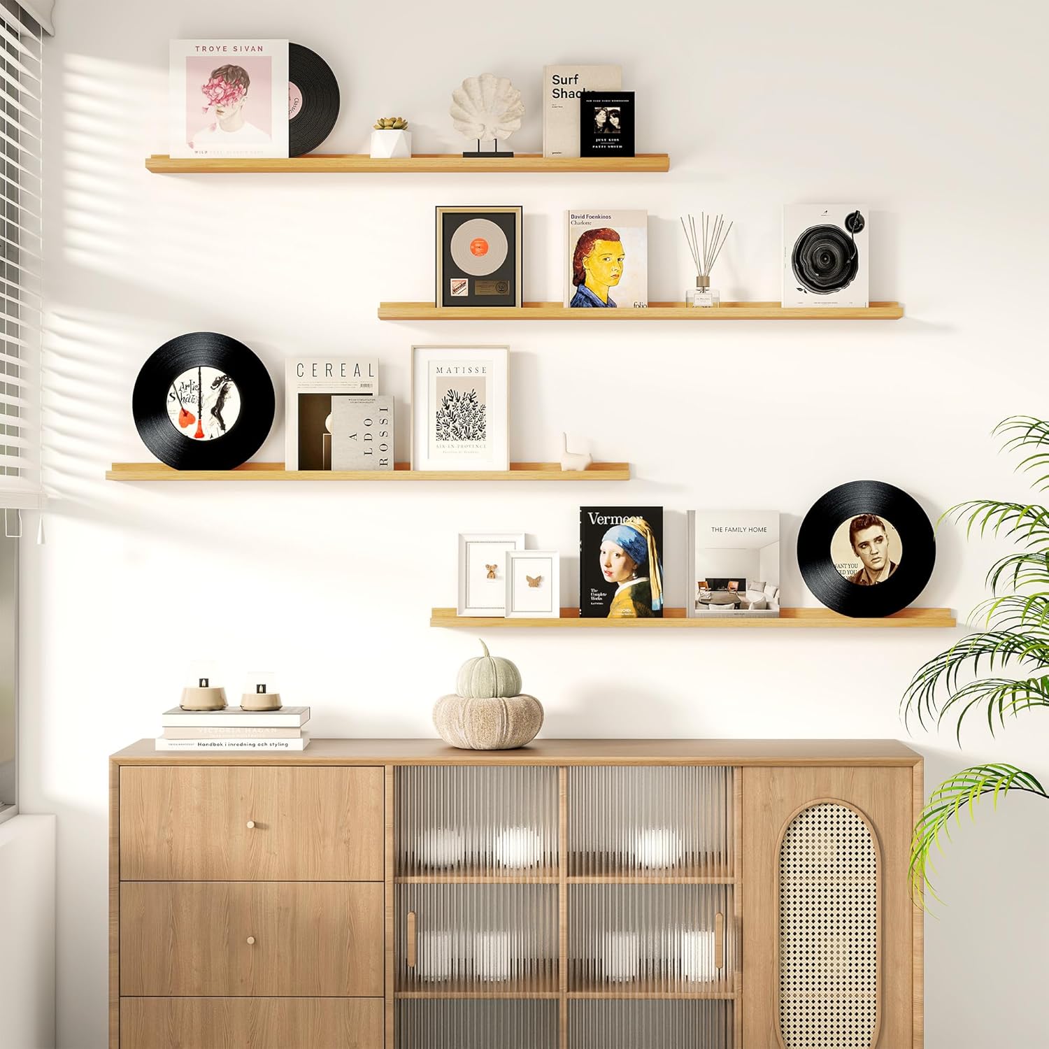 Picture Ledge Shelf for Wall, Floating Shelves Set of 4, 48 Inch Long Nursery Book Shelves for Toys Storage, Kids Bookshelf Wall Mounted for Books Photo Frames, Oak