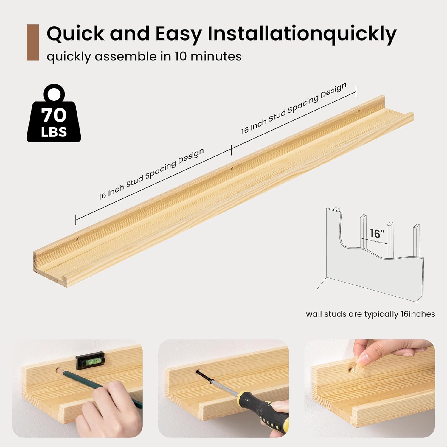 - 3.5" Floating Picture Ledge: Anti-Slip Narrow Design-3.5" ultra-narrow depth holds frames/plants without sliding, even on angled walls. Stud-Mounted Stability-16" pre-drilled holes match standard studs (hardware incl.) for wobble-free install. Clutter-Free Aesthetic-Clean lines blend with farmhouse/Scandinavian decor, focusing on your treasures