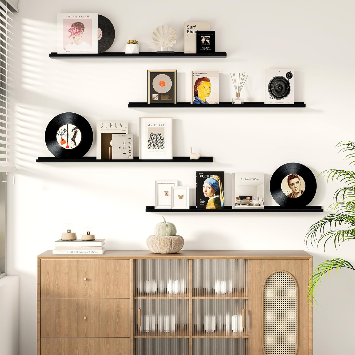 Picture Ledge Shelf for Wall, Floating Shelves Set of 4, 48 Inch Long Nursery Book Shelves for Toys Storage, Kids Bookshelf Wall Mounted for Books Photo Frames, Black