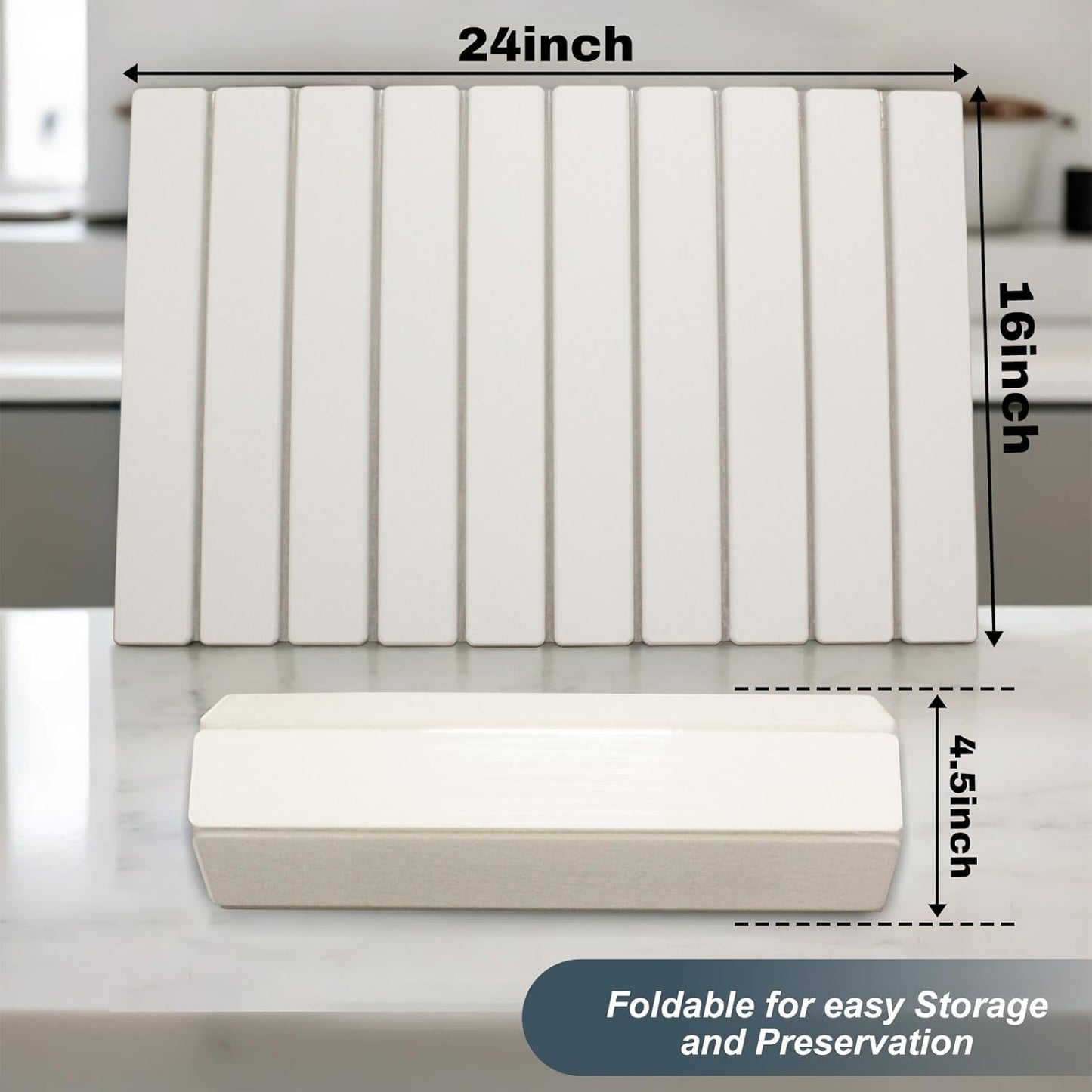 Large Stone Dish Drying Mats for Kitchen Counter, Quick Dry Absorbent Collapsible Dish Drying Mat,Diatomaceous Earth Mats for Dishes Bottles Cups,Match Any Countertop,White 24 * 16inch