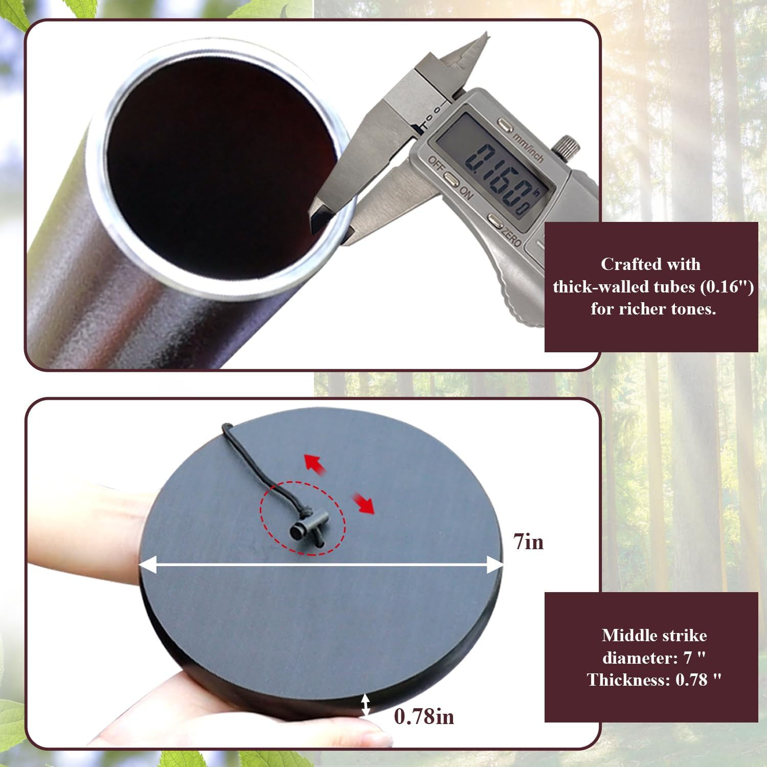 - 78 Inch large Wind Chimes - The longest tube of the large wind chimes is 47.6 Inch,diameter is 2.4 Inch.6 aluminum powder-coated tubes,every metal tube of this large wind chime is hand-tuned by our professional tuning experts to achieve a superior musical performance.Heavy duty nylon cording high density striker for a clear tone and resonances.