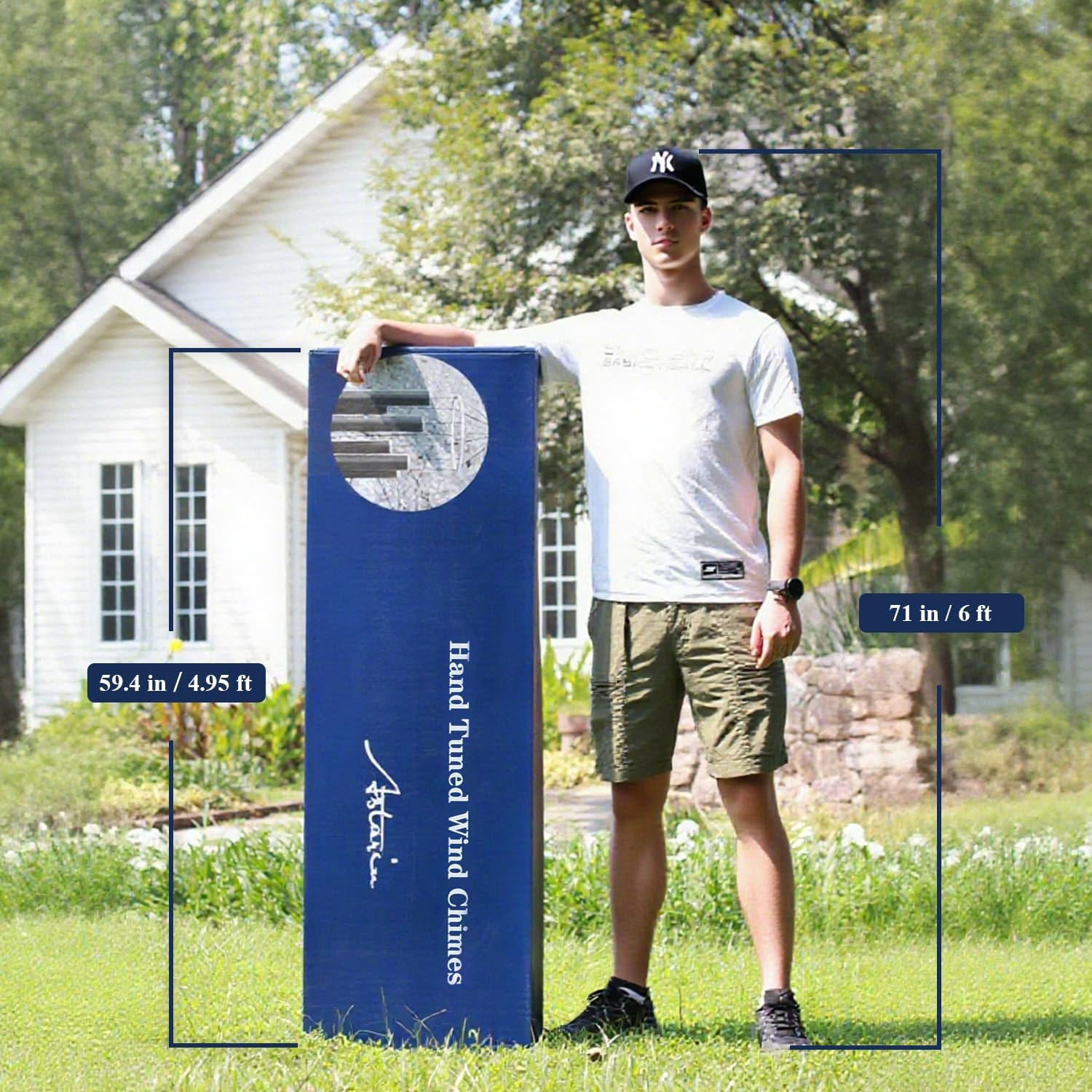 - 90 Inch large Wind Chimes - The longest tube of the large wind chimes is 53.54 Inch,diameter is 2.4 Inch.6 aluminum powder-coated tubes,every metal tube of this large wind chime is hand-tuned by our professional tuning experts to achieve a superior musical performance.Heavy duty nylon cording high density striker for a clear tone and resonances.