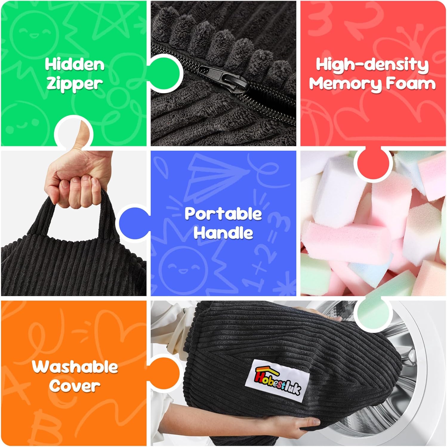 - Creative Design: Hobestluk bean bag chairs look like a tear drop with a wide base that narrows towards the top. There are six colors for you to choose in this design. Plus, our bean bag is made of comfy textured corduroy fabric and high-density memoy foam, which feels like you're sinking into a cloud.